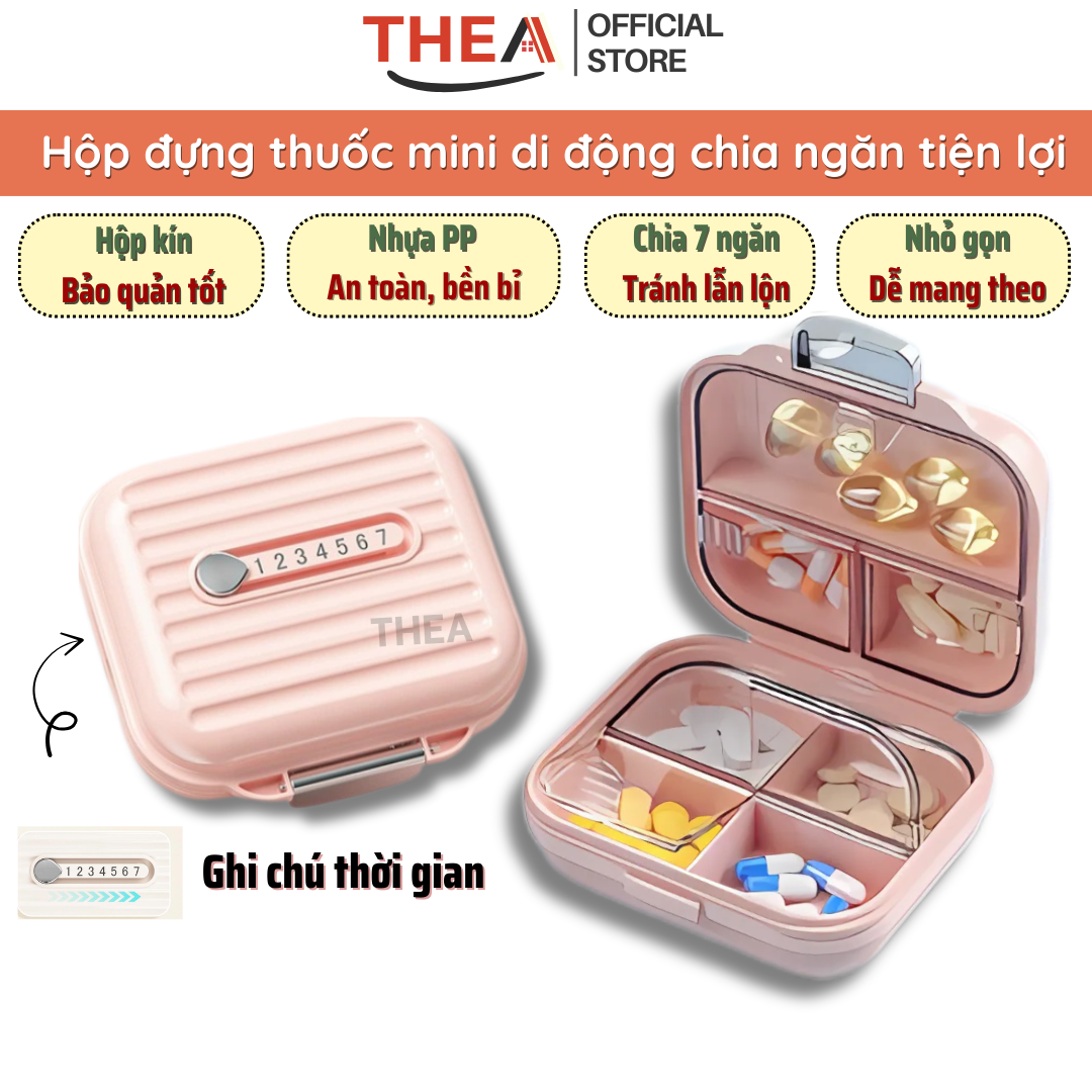 Hộp đựng chia thuốc mini, hộp chia thuốc 7 ngày nhỏ gọn mini cute dễ mang theo - THEA