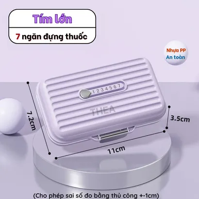 - Đặc điểm nổi bật: hộp có thiết kế vành khung chống vỡ, khóa an toàn, ngăn chia 7 ngăn cho viên nén, viên nang.