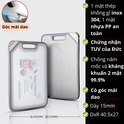 ☑️ Thớt 2 mặt inox 304 và nhựa PP, có góc mài dao