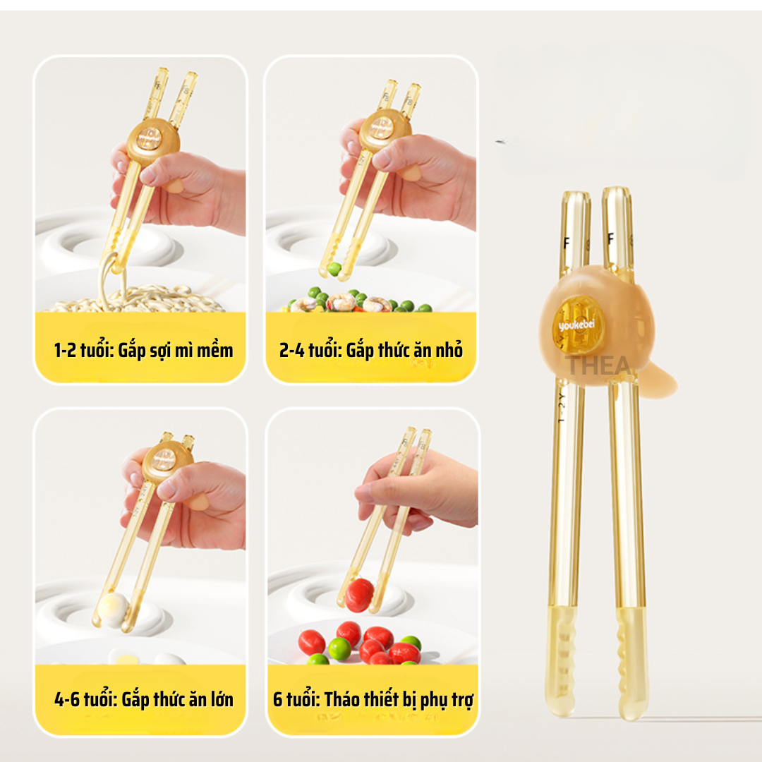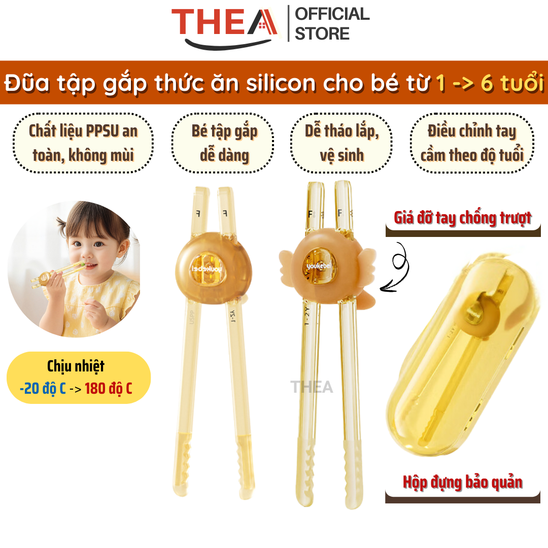 Đũa tập ăn cho bé, đũa tập gắp ăn, đũa ăn dặm trẻ em ăn cơm, tập gắp silicon an toàn cho bé từ 1 đến 6 tuổi - THEA