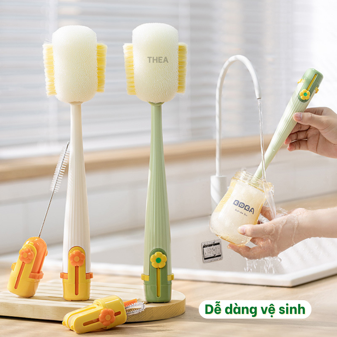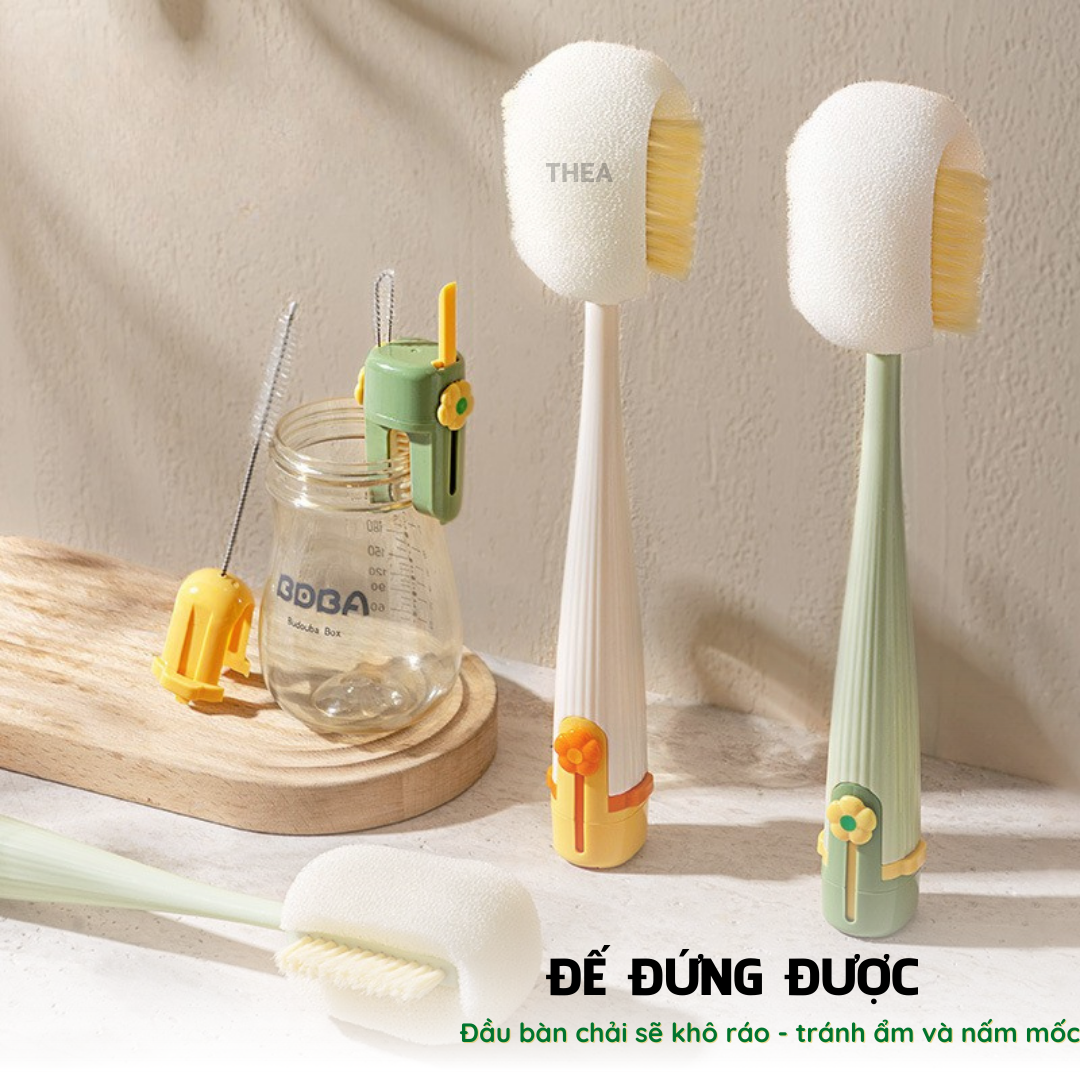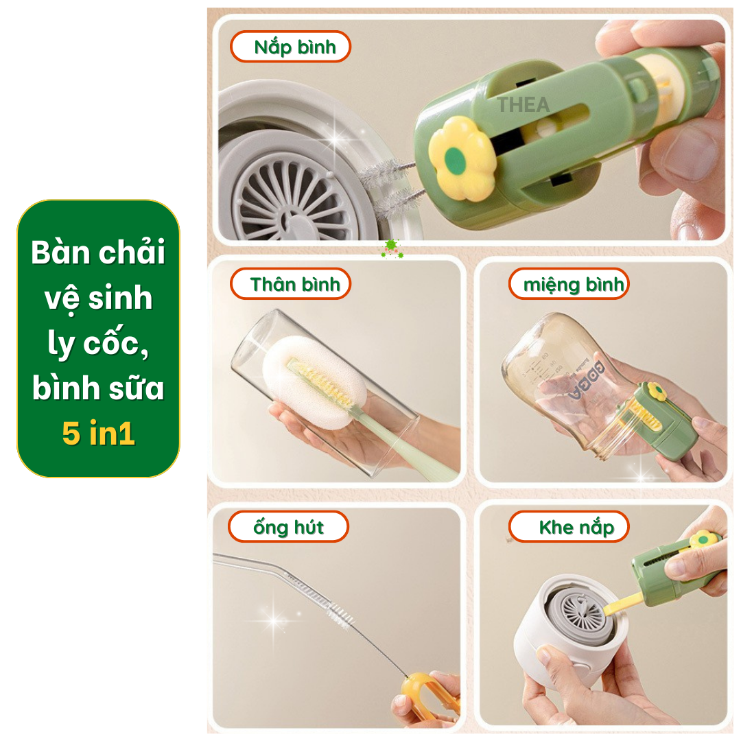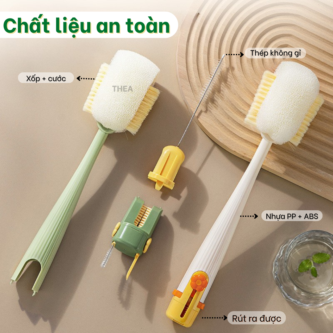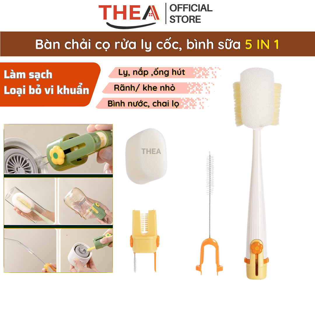 Bàn chải cọ rửa ly cốc bình sữa mút xốp đa năng, dụng cụ cọ rửa ống hút, khe rãnh nắp bình nước, miệng ly đa năng 5 in 1 – THEA