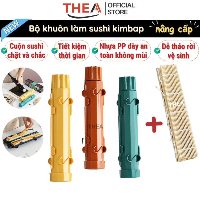Khuôn làm cơm cuộn sushi, dụng cụ làm sushi kimbap nâng cấp mới cuộn lá rong biển cho bé kèm chiếu cuộn– THEA