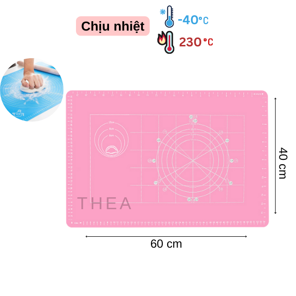 Thảm nhào bột silicone bạch kim làm bánh, tấm lót nhào cán bột chống dính 50x40cm, 60x40cm. 40x30cm, 30x21cm - THEA