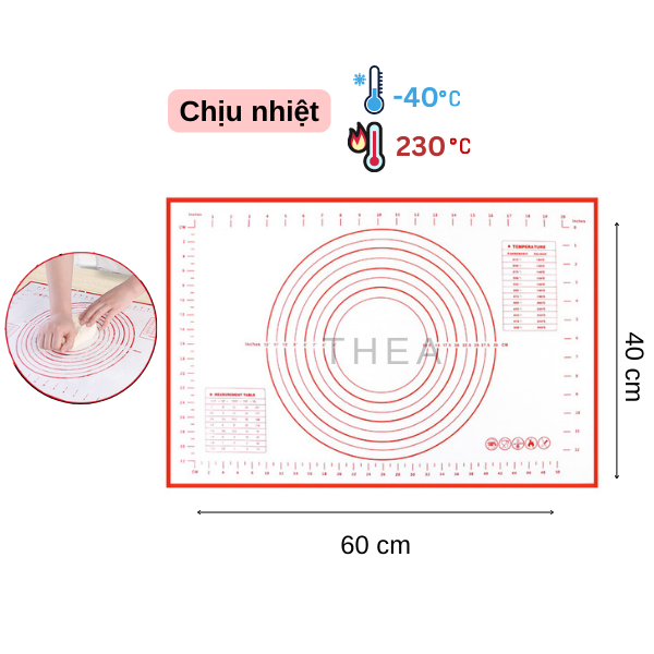 ☑️ Tấm lót nhào bột này có khả năng chịu được nhiệt độ từ - 40 đến 230 độ C
