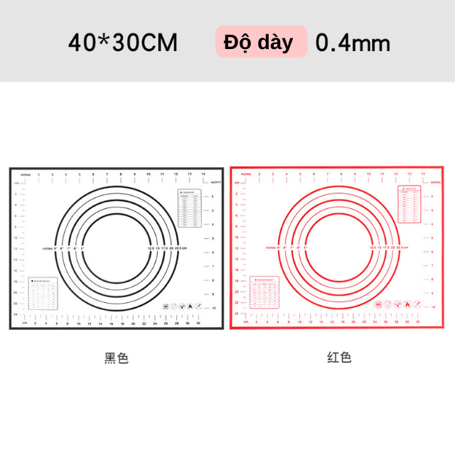 - Thảm silicone bạch kim (đỏ/đen), độ dày 0.4mm