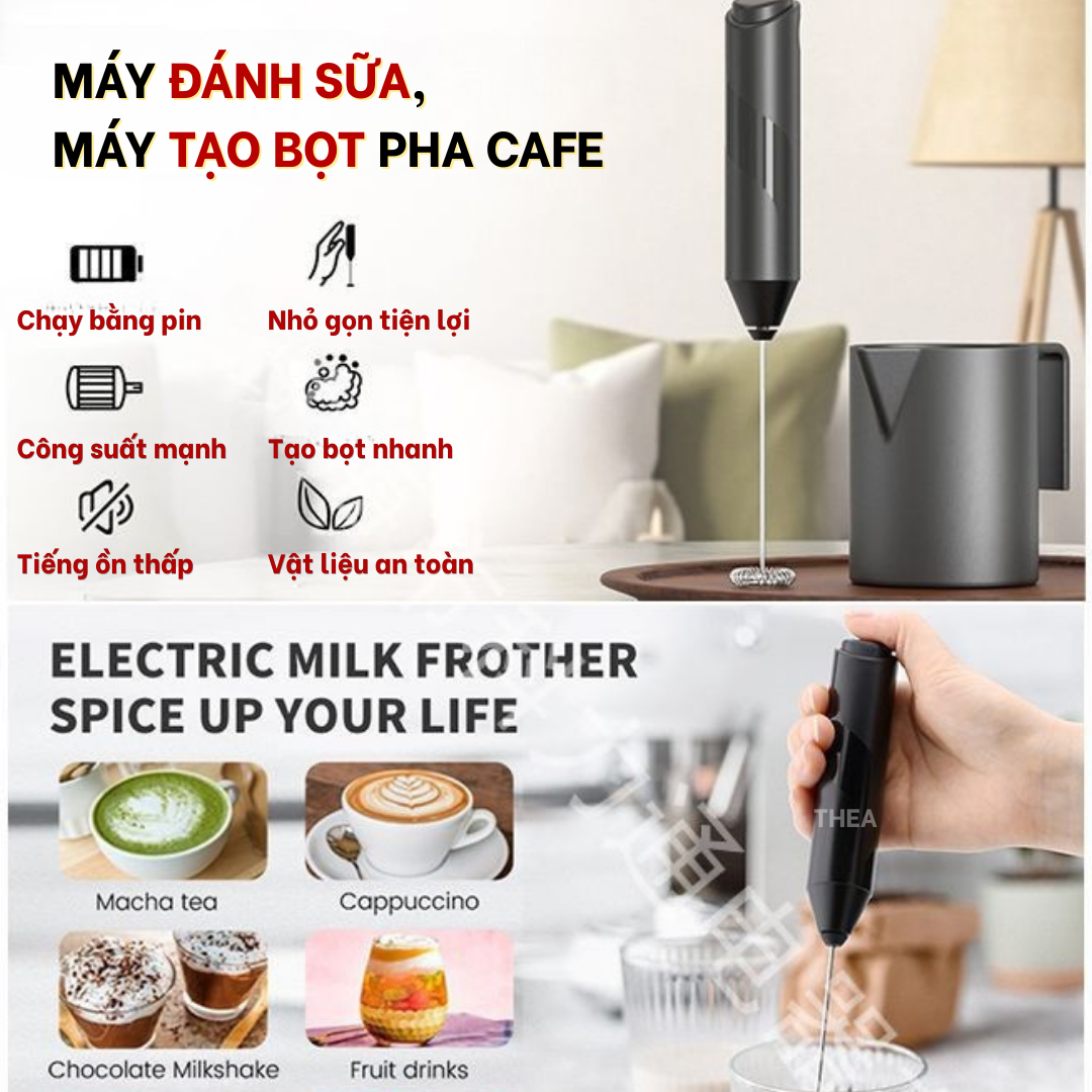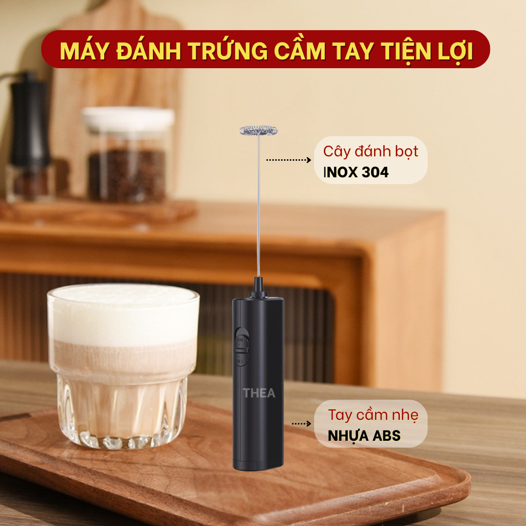 Máy đánh tạo bọt cà phê, sữa, kem muối cầm tay, cây đánh tạo bọt cafe, đánh trứng mini - THEA