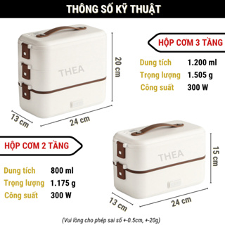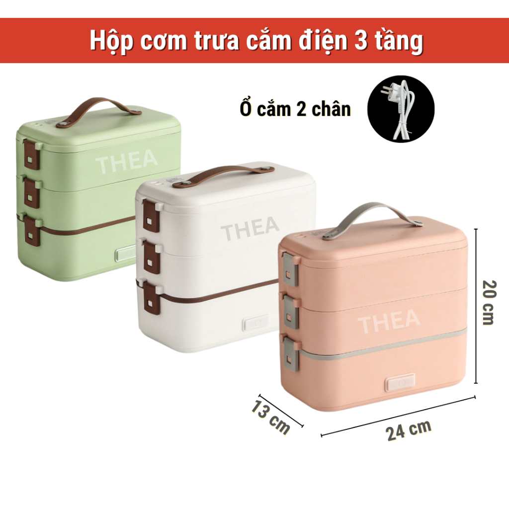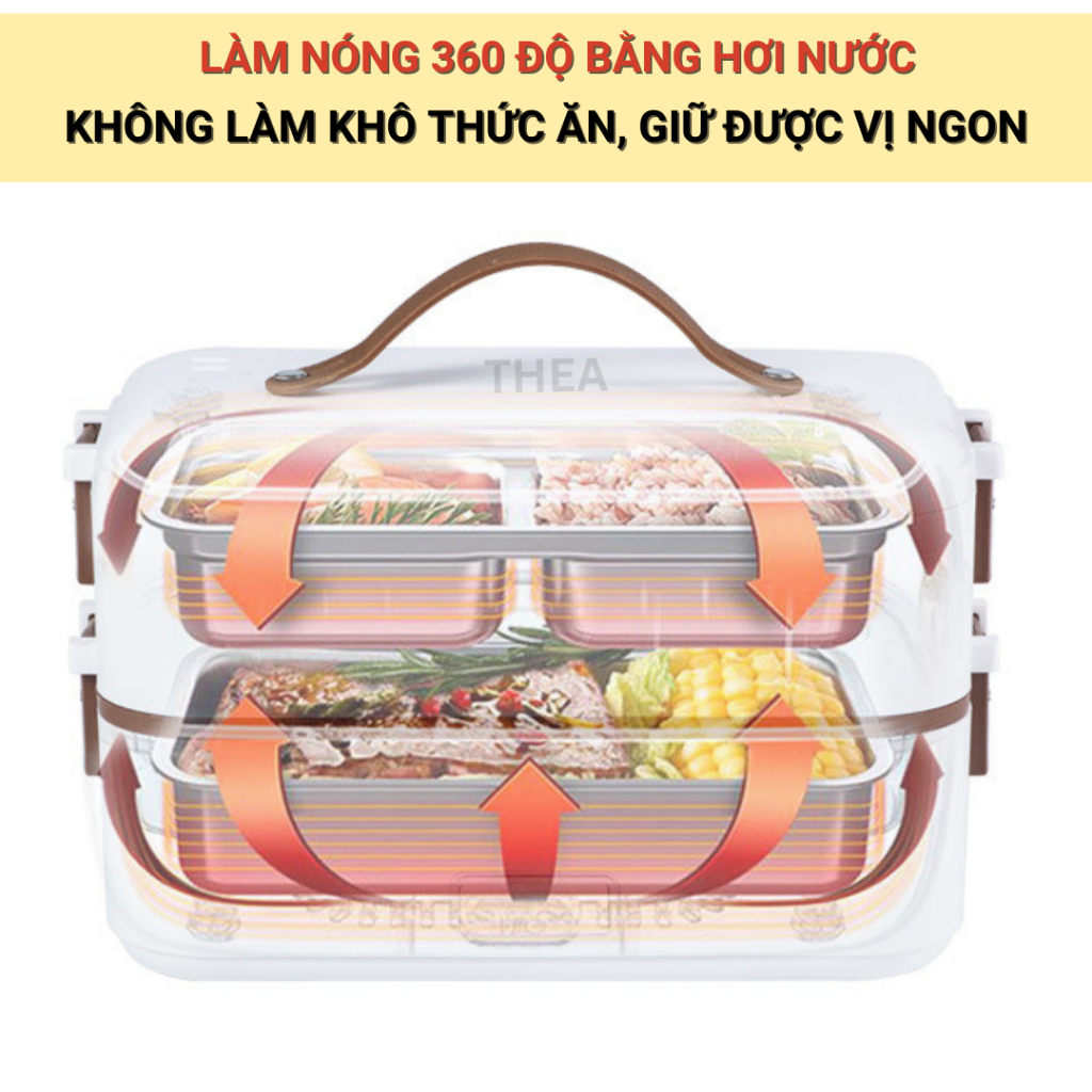 Tên sản phẩm: Hộp đựng cơm cắm điện văn phòng 2,3 tầng khay inox 304 chia ngăn cao cấp nấu hầm hấp hâm nóng đa năng – THEA