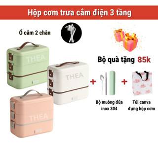 Hộp đựng cơm cắm điện văn phòng 2,3 tầng khay inox 304 chia ngăn cao cấp nấu nhanh hầm hấp hâm nóng đa năng (có quà) - THEA