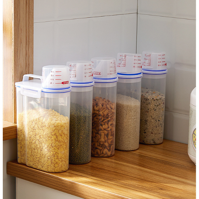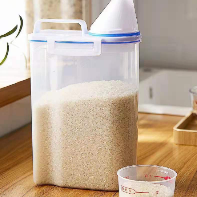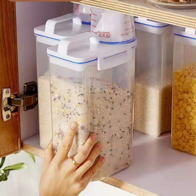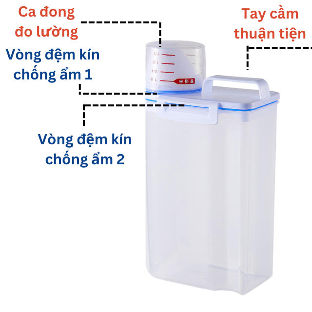 Hộp nhựa đựng gạo/hạt ngũ cốc bảo quản thực phẩm khô trong suốt đậy kín chống ẩm mối mọt có cốc đong 2kg - THEA