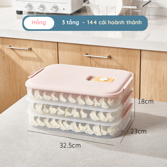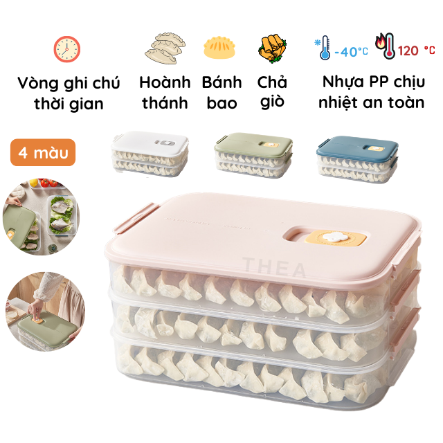 Hộp nhựa đựng thực phẩm, bánh bao, há cảo, chả giò tủ lạnh nhiều tầng, hộp bảo quản thực phẩm tủ lạnh có vòng ghi chú thời gian – THEA