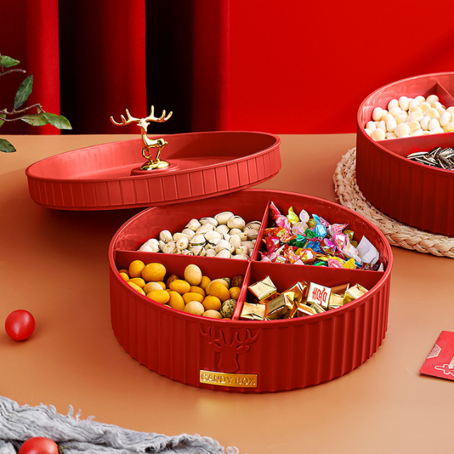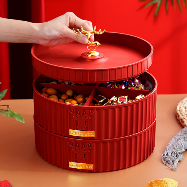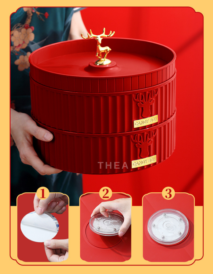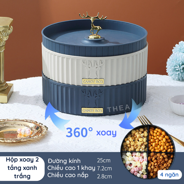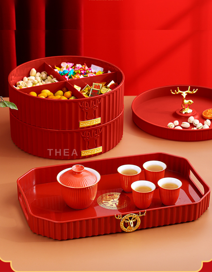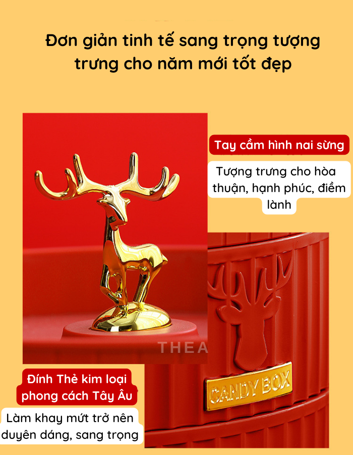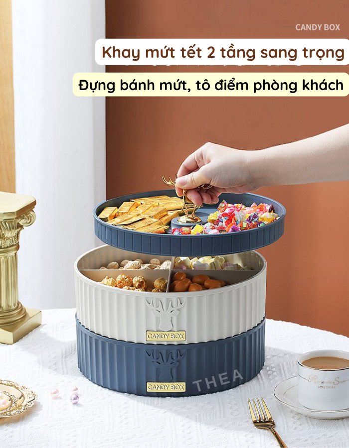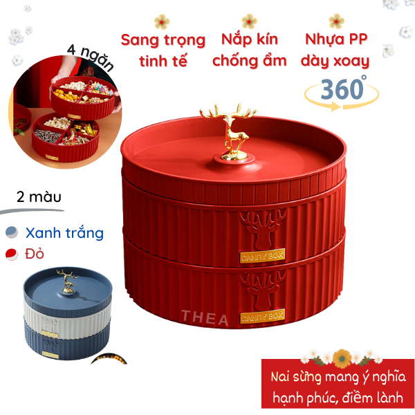 Khay hộp đựng bánh mứt tết cao cấp bằng nhựa 1-2 tầng sang trọng, đẹp, tinh tế hinh nai sừng phong cách Tây Âu - THEA
