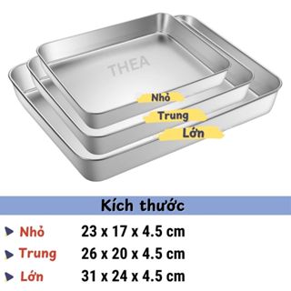 ☑️ Khay inox 304 hình chữ nhật dày dặn bền bỉ với nhiều kích thước từ 23cm, 26cm, 31cm đa công dụng đáp ứng đa dạng nhu cầu nấu ăn, làm bánh mà lại an toàn cho sức khỏe gia đình.