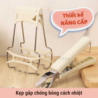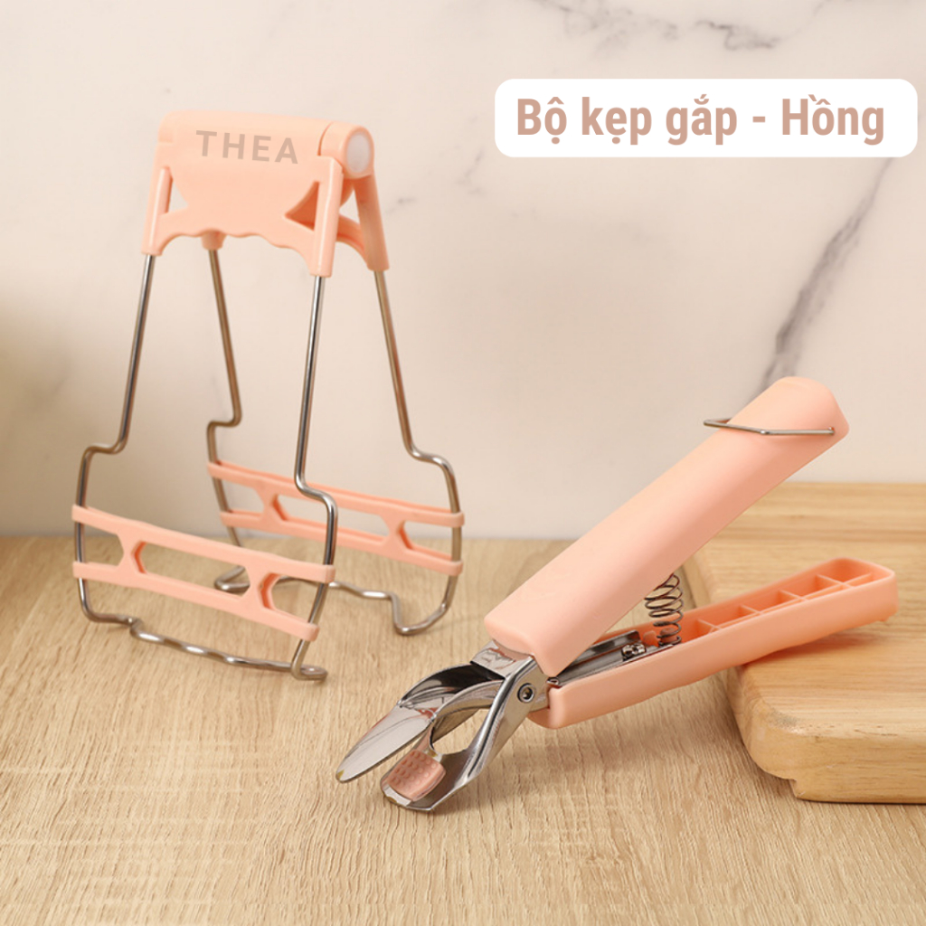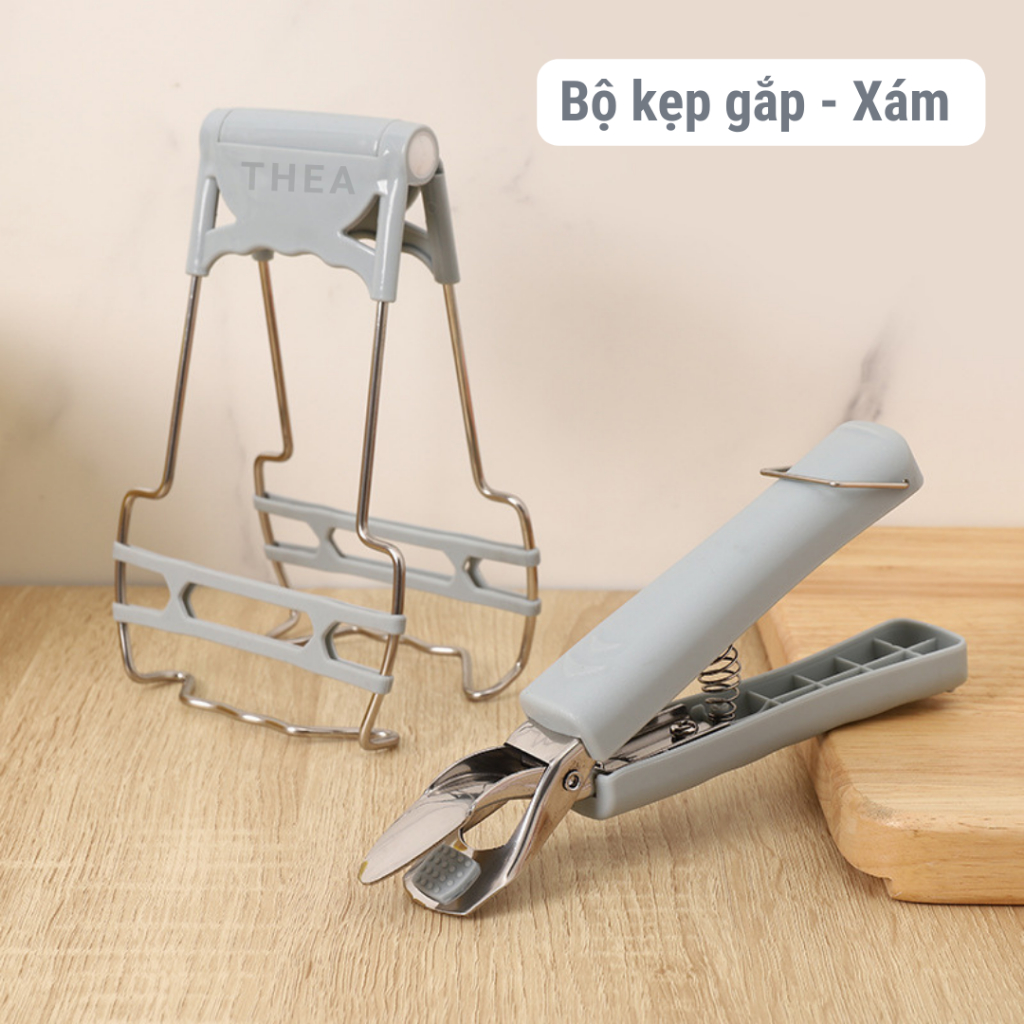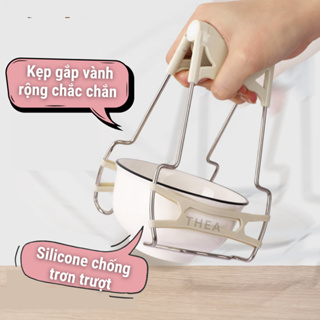 Bộ kẹp gắp đồ nóng, dụng cụ gắp bát đĩa chén chống nóng bằng inox cao cấp có silicone chống trơn trượt - THEA