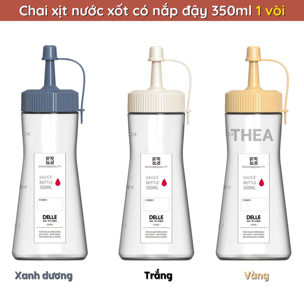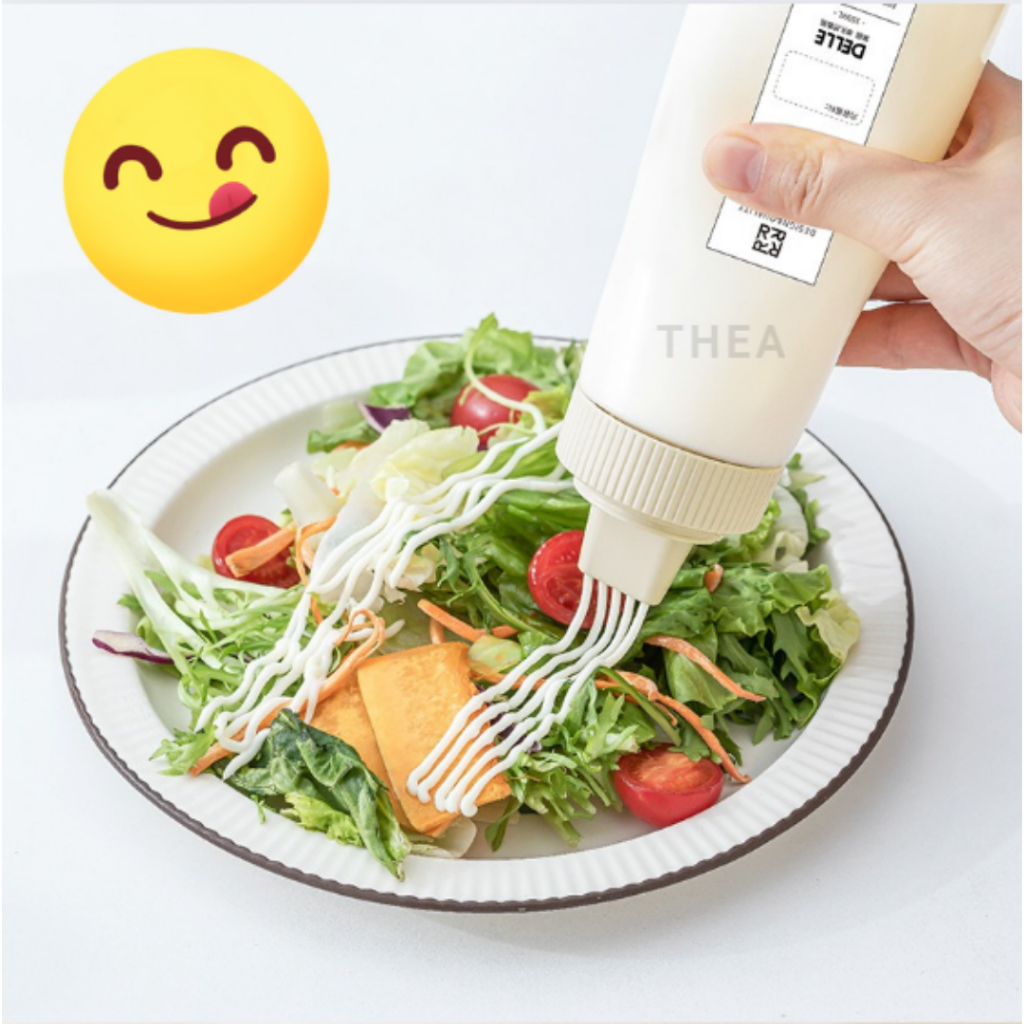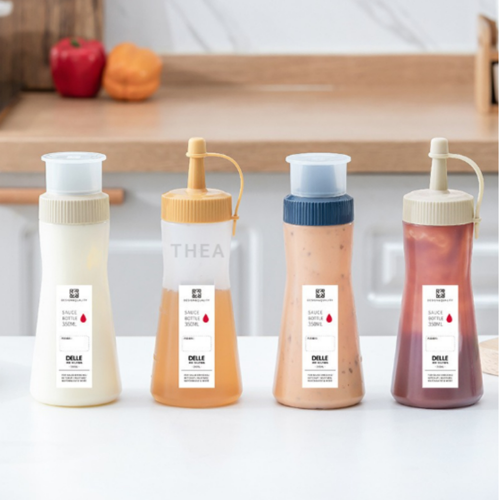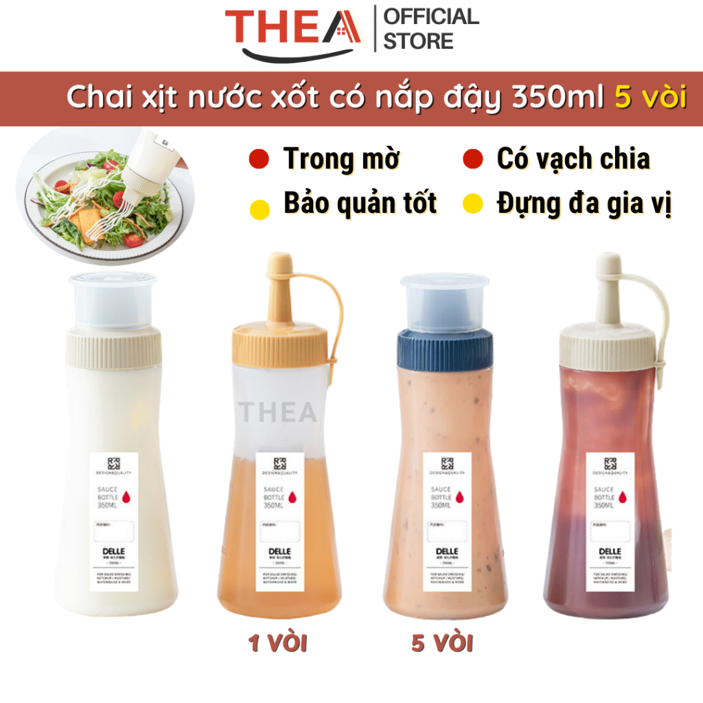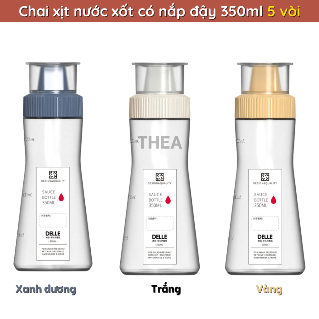 Tên sản phẩm: Chai nhựa bóp 350ml đựng nước sốt, bình đựng tương ớt, tương cà, đựng dầu, siro pha chế có vòi 5 lỗ làm salad có nắp đậy chống bụi – THEA