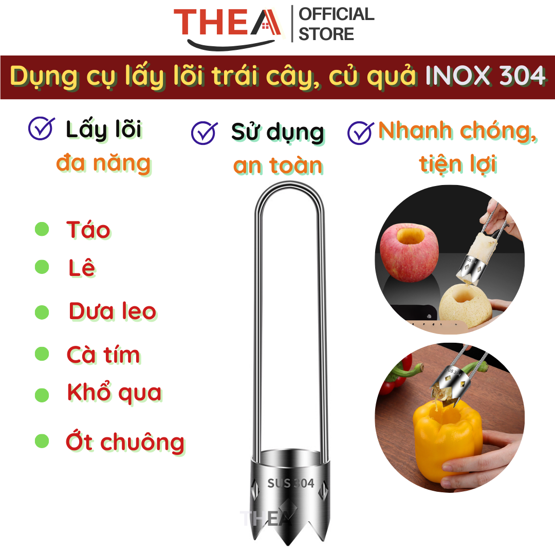 Dụng cụ lấy hạt táo, hột lê, lấy lõi ruột trái cây, củ quả inox 304 cao cấp - THEA