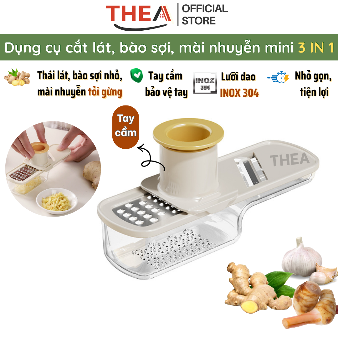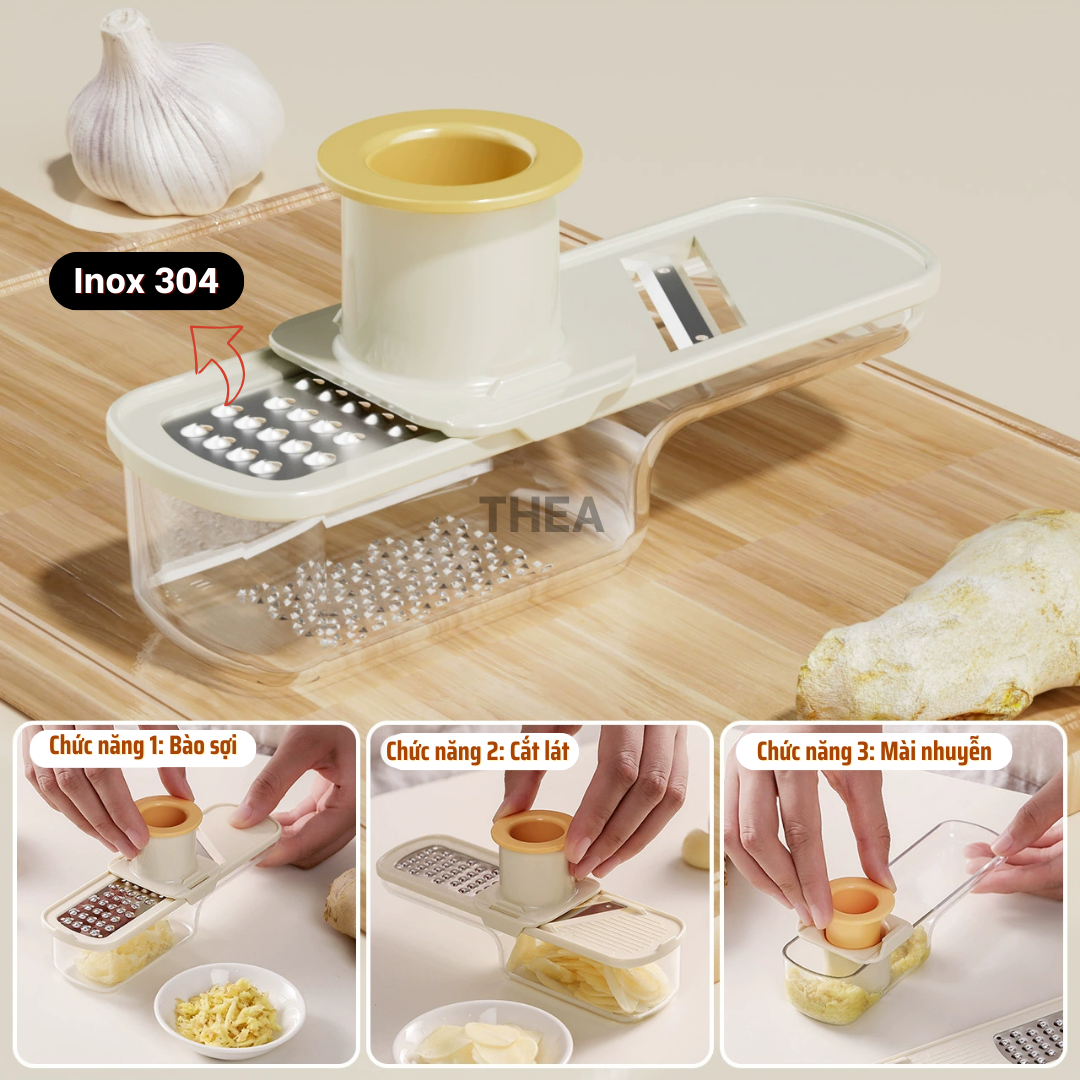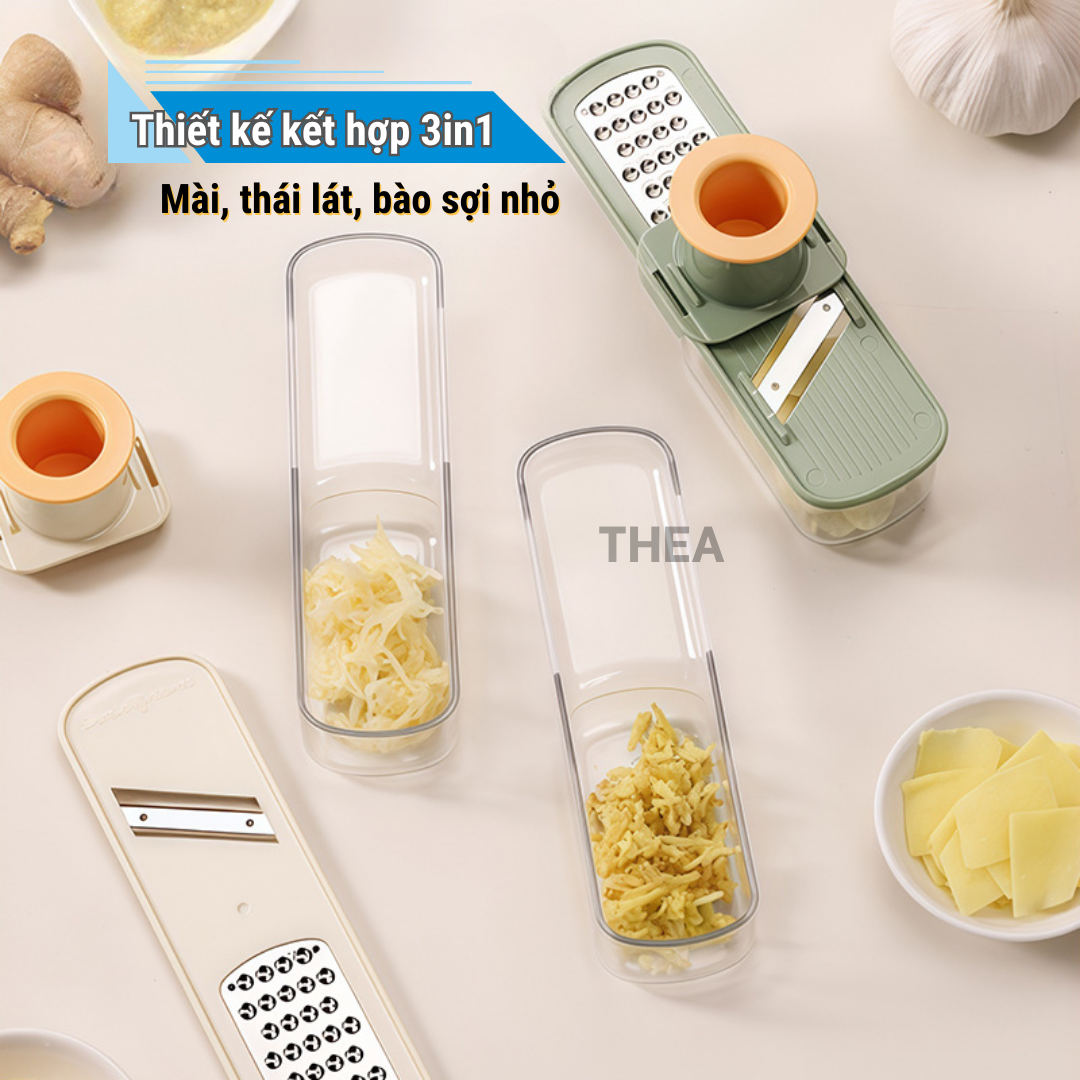 Dụng cụ nghiền tỏi, gừng, bộ nạo, bào sợi nhỏ, thái lát đa năng 3 in 1 mini kèm hộp đựng tiện lợi - THEA