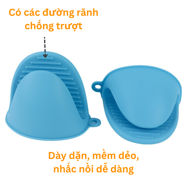 [Dày 100% silicone] Bộ 2 miếng nhấc nồi, kẹp nhắc nồi silicone, găng tay chịu nhiệt độ cao chống nóng, cách nhiệt mềm dẻo