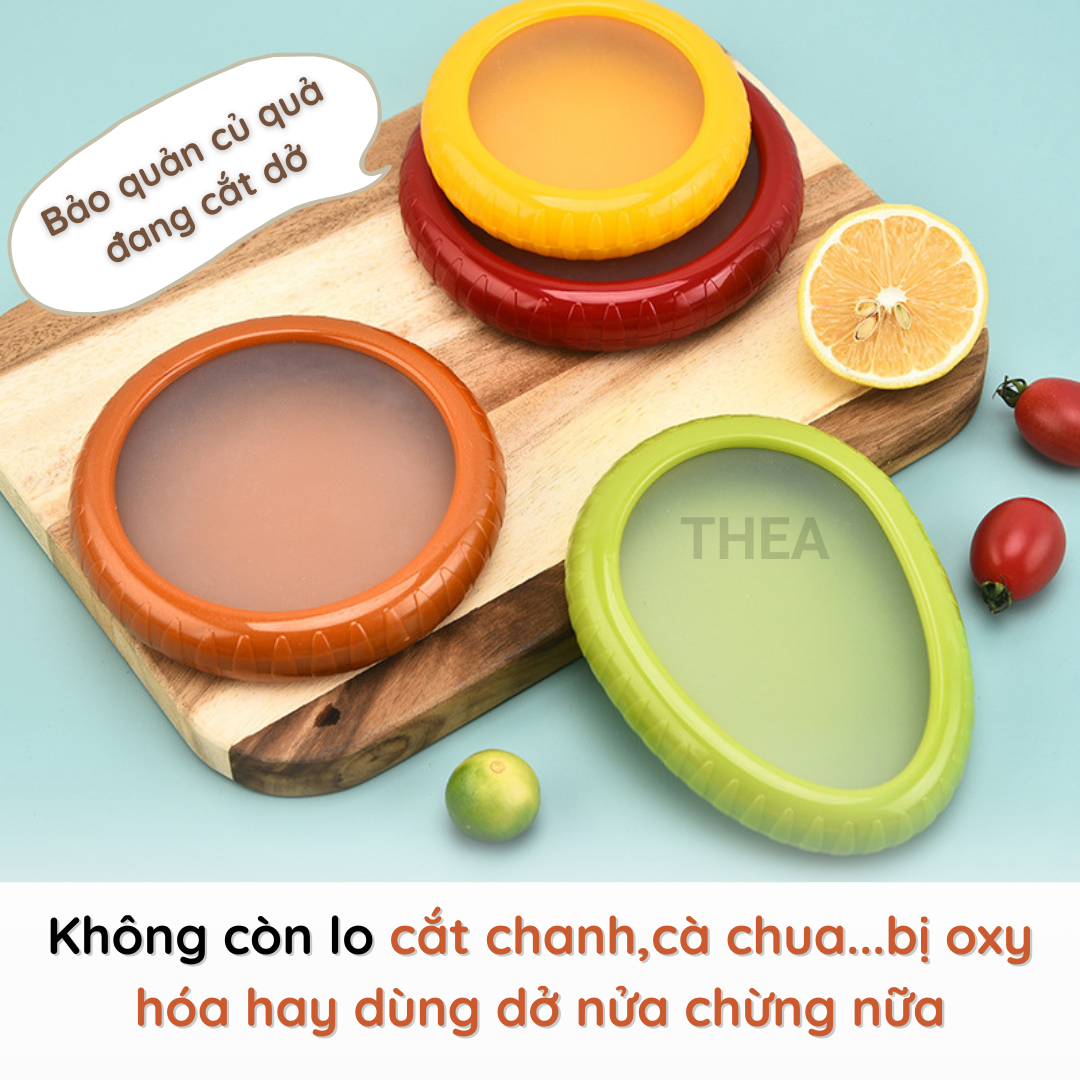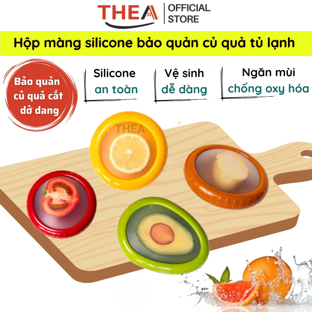 Hộp bảo quản trái cây tủ lạnh, màng bọc silicon bảo quản trái cây củ quả cắt dở - THEA