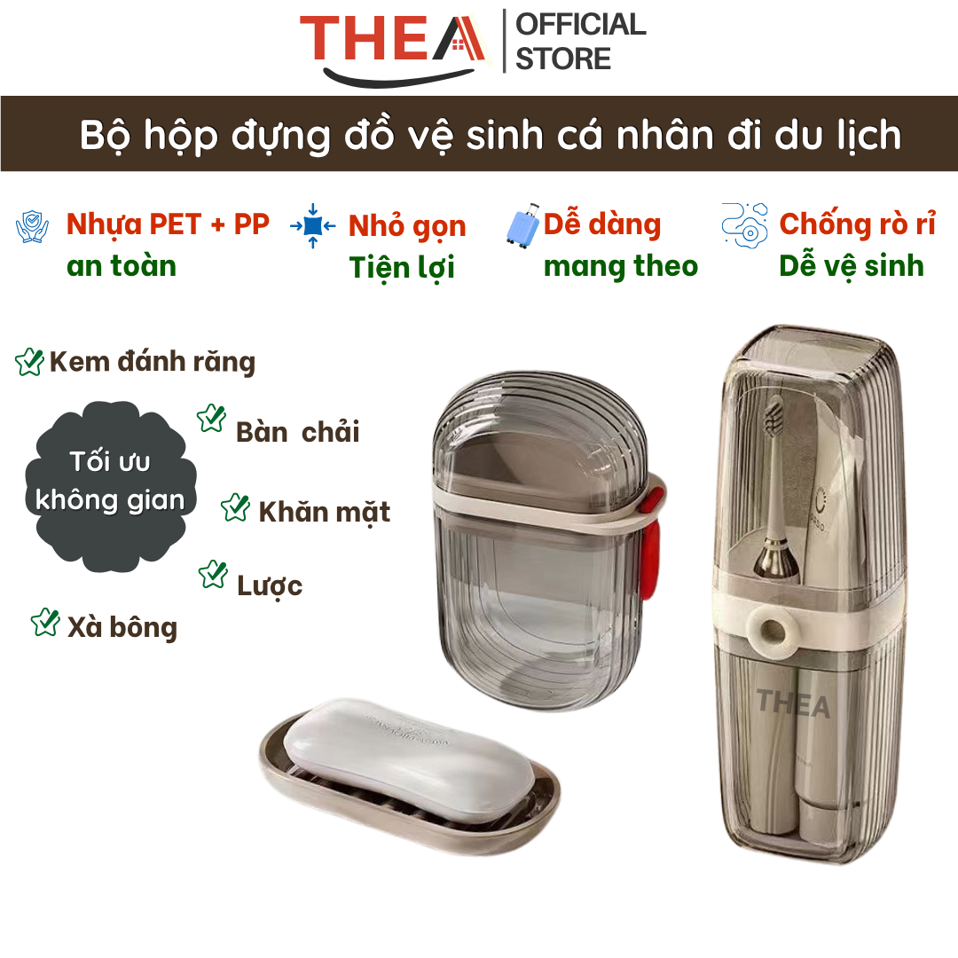 Hộp đựng bàn chải, kem đánh răng, hộp đựng xà phòng, xà bông cục đi du lịch có nắp, cốc đựng kem đánh răng, bàn chải - THEA