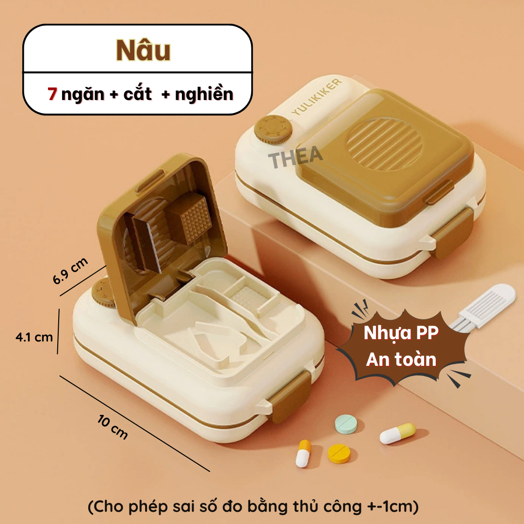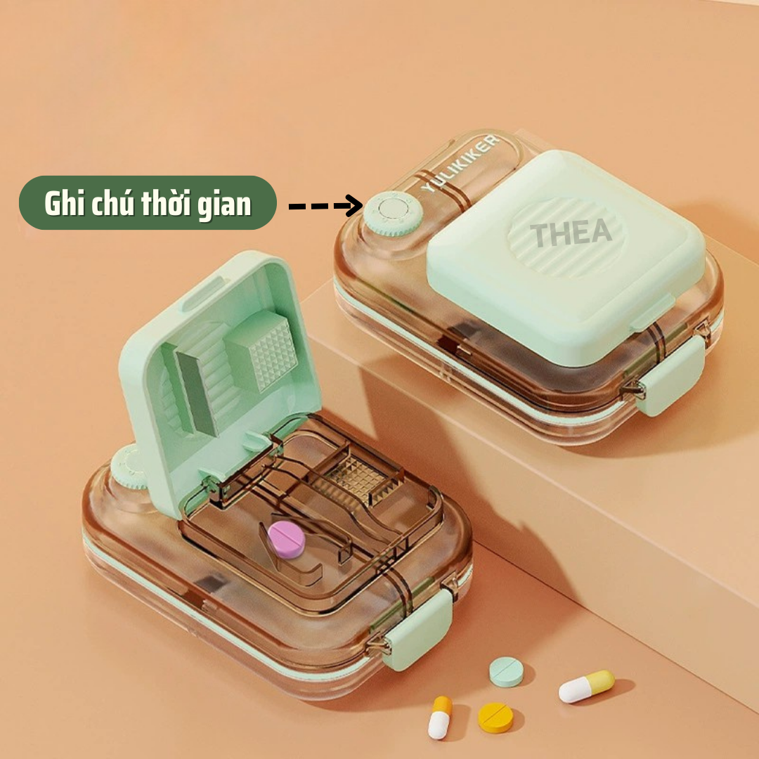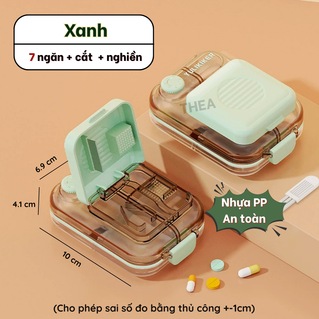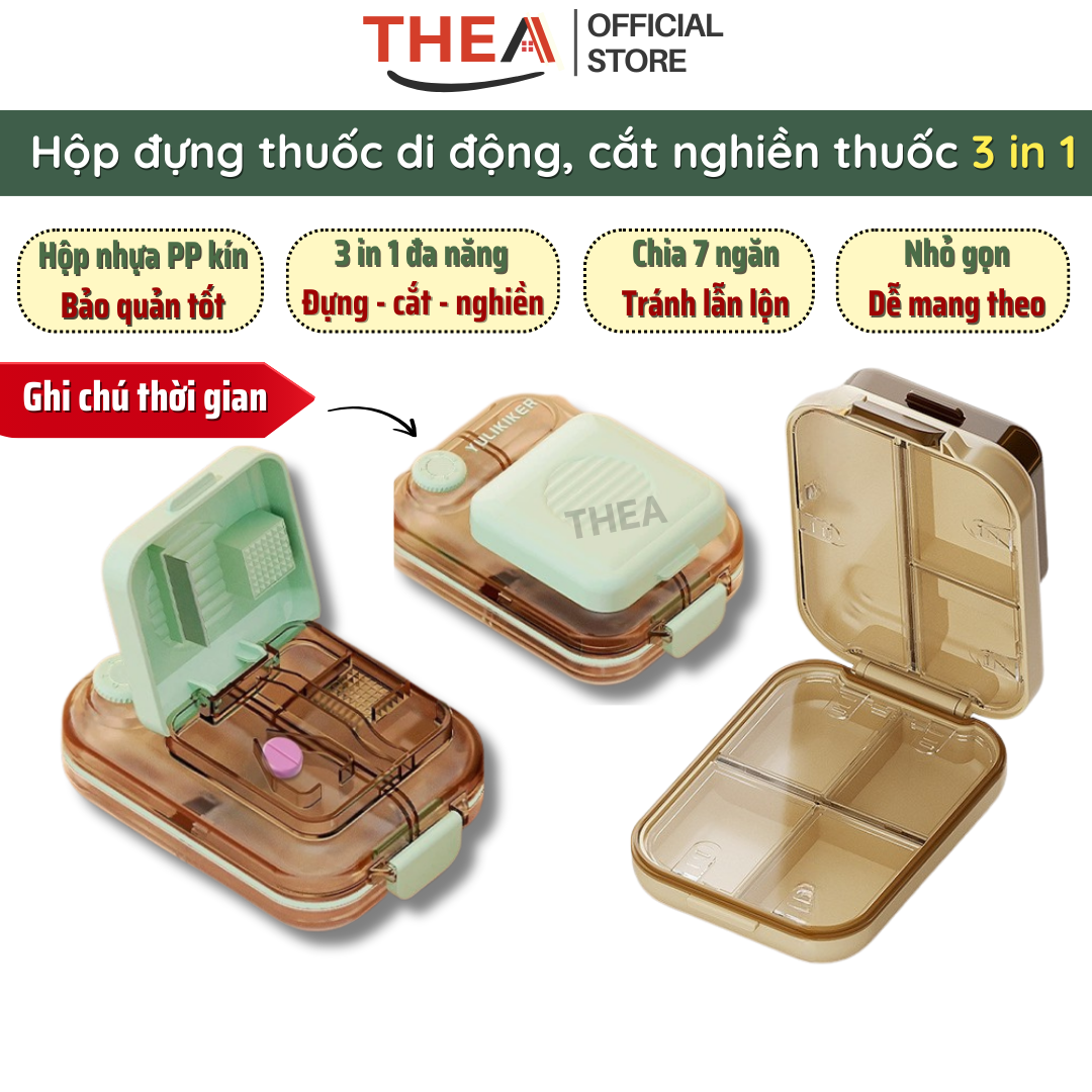 Hộp đựng chia thuốc mini, hộp chia thuốc 7 ngày, hộp thuốc kèm dụng cụ cắt nghiền thuốc viên nhỏ gọn 3 in 1 - THEA