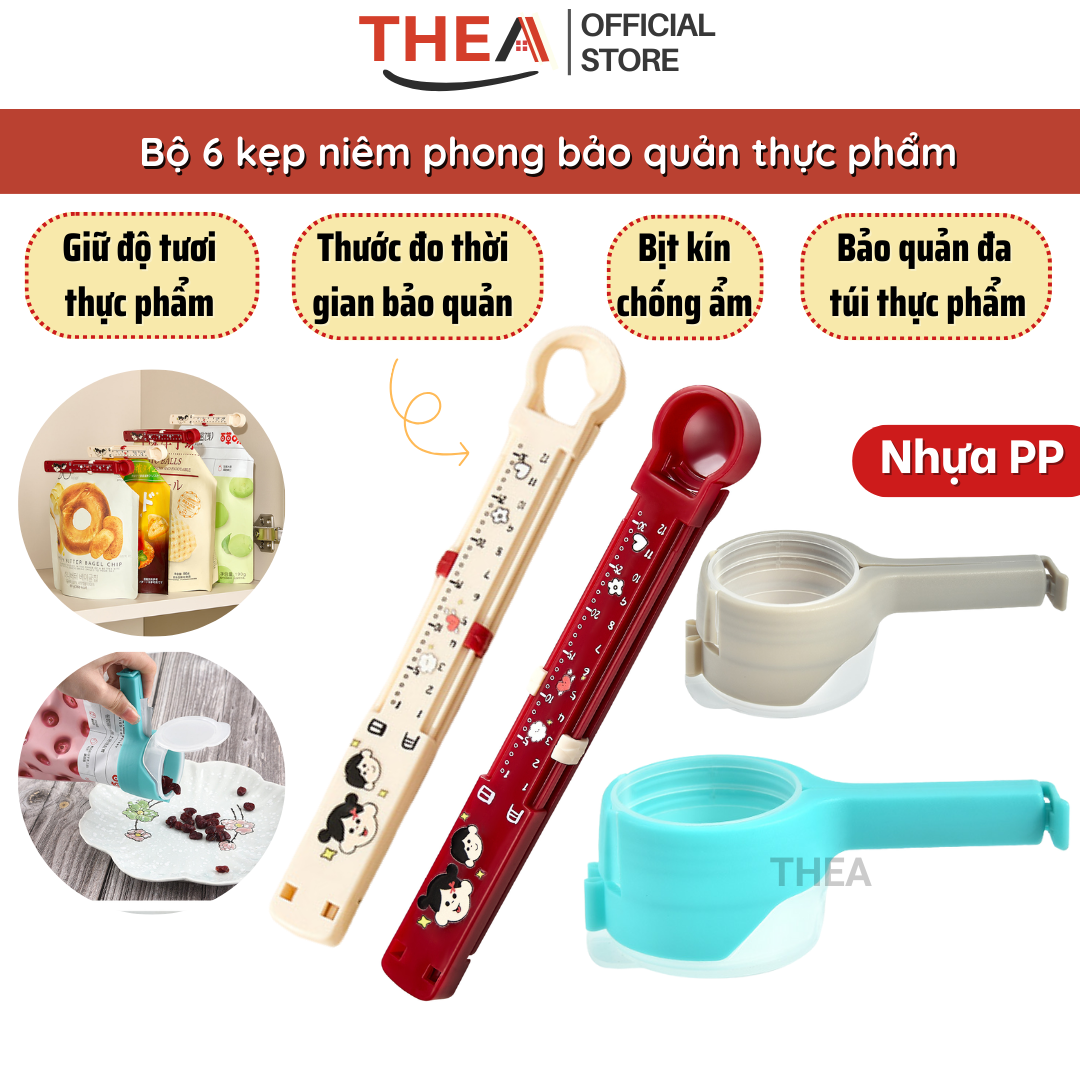 Kẹp miệng túi thực phẩm, kẹp niêm phong miệng túi đa năng có ghi chú thời gian bảo quản - THEA