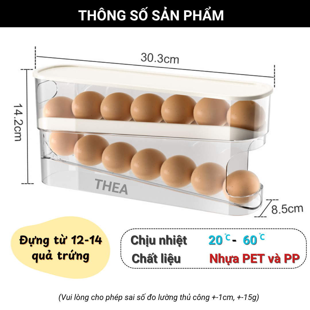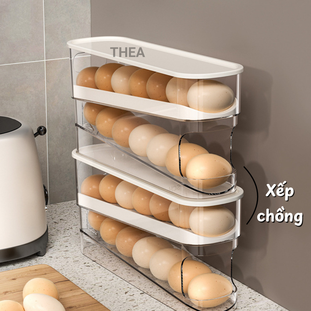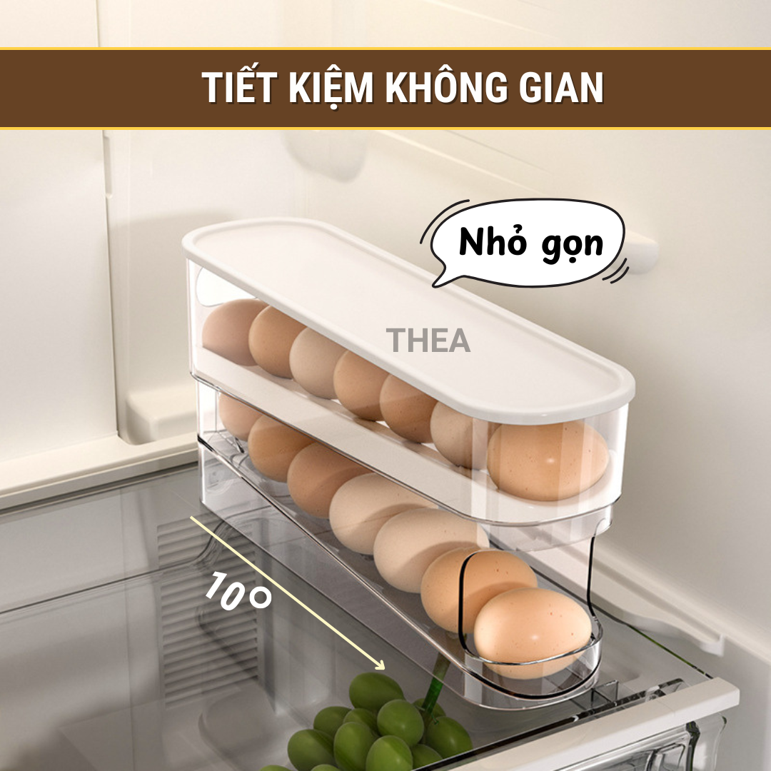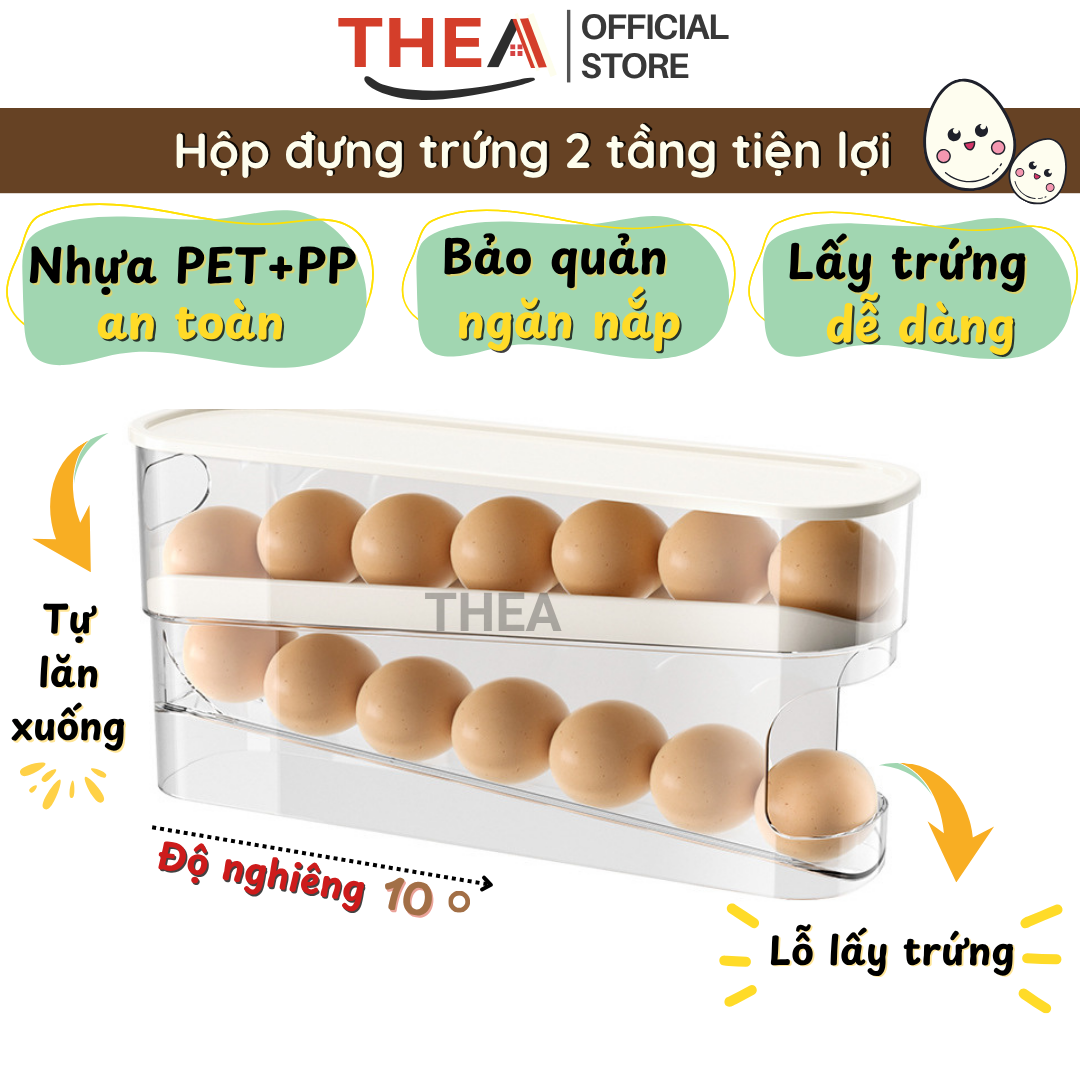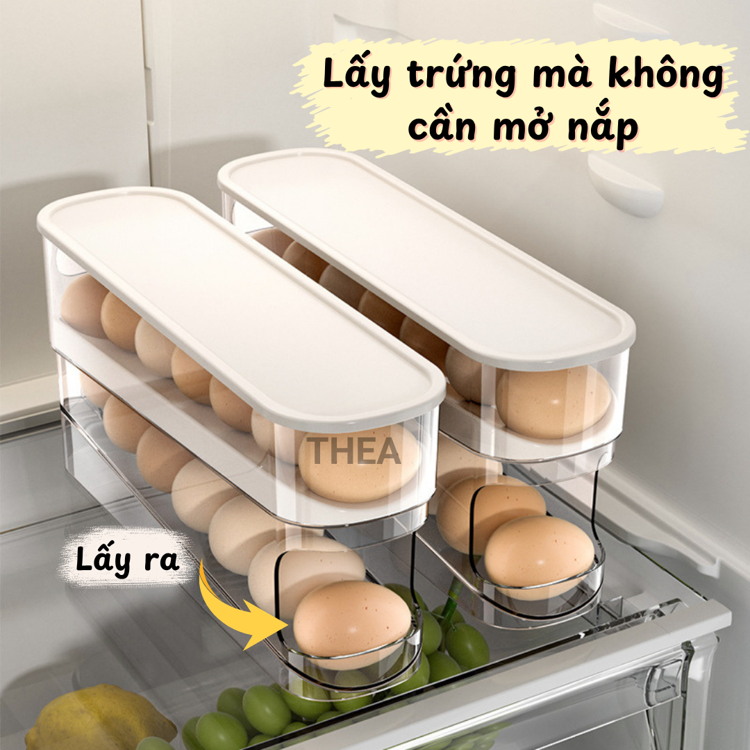Khay đựng trứng tủ lạnh, hộp đựng trứng gà, vịt 2 tầng thông minh tự động lăn lấy trứng dễ dàng bằng nhựa - THEA