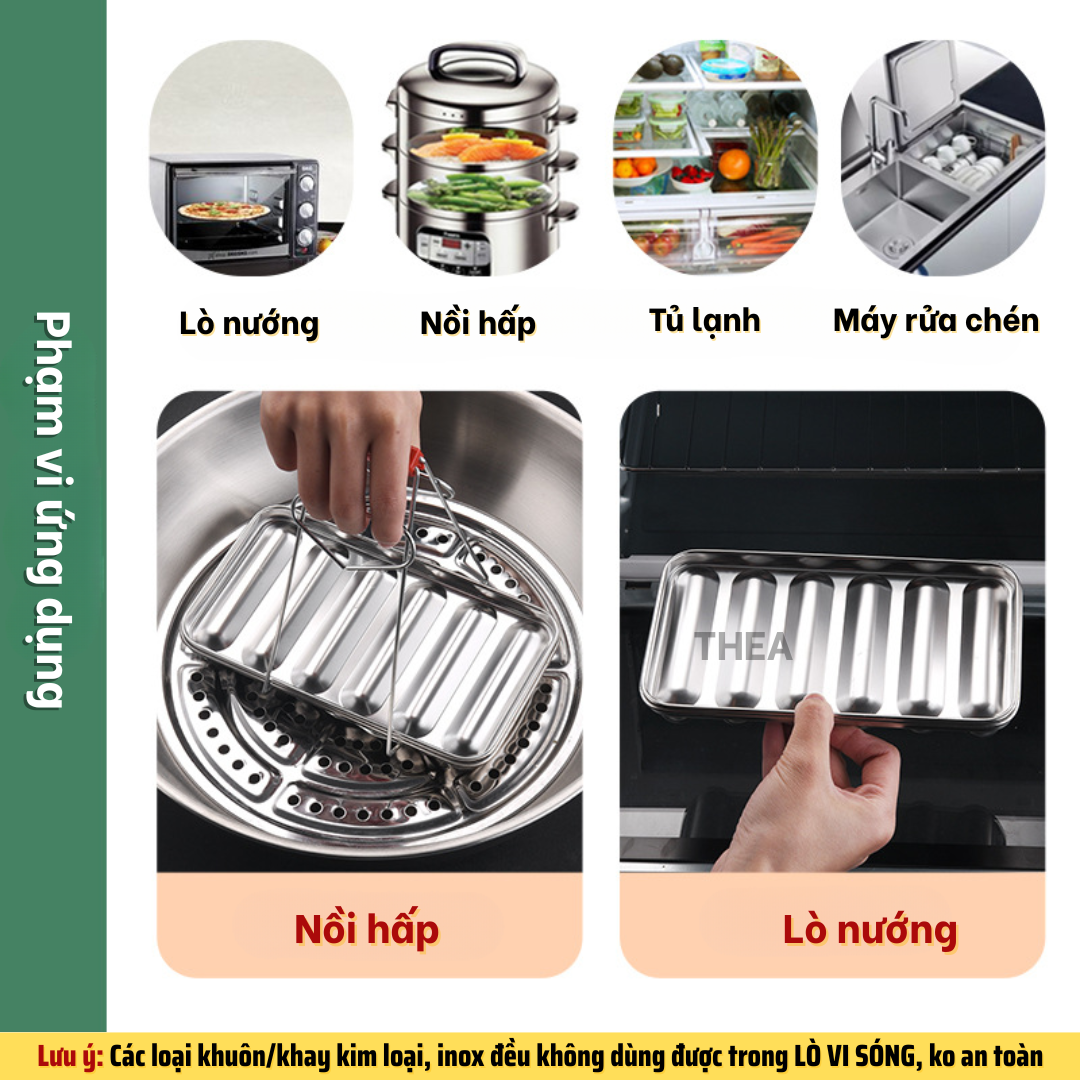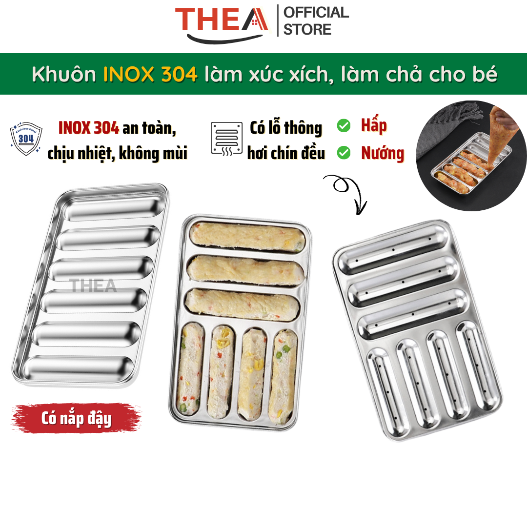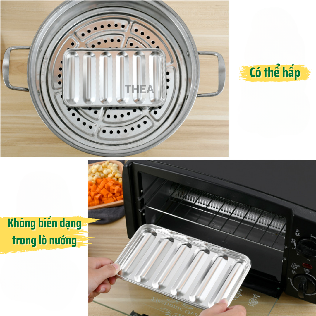 Khay inox, khuôn làm xúc xích cho bé INOX 304 cao cấp có nắp có lỗ thông hơi chín đều hấp nướng an toàn - THEA