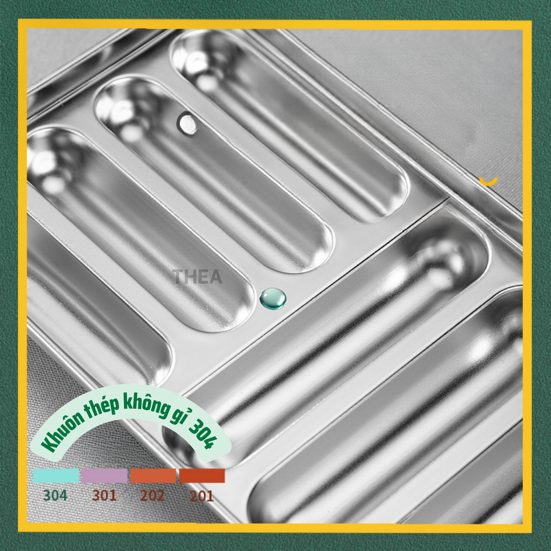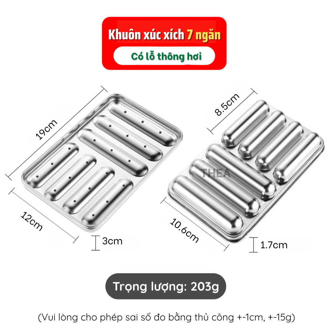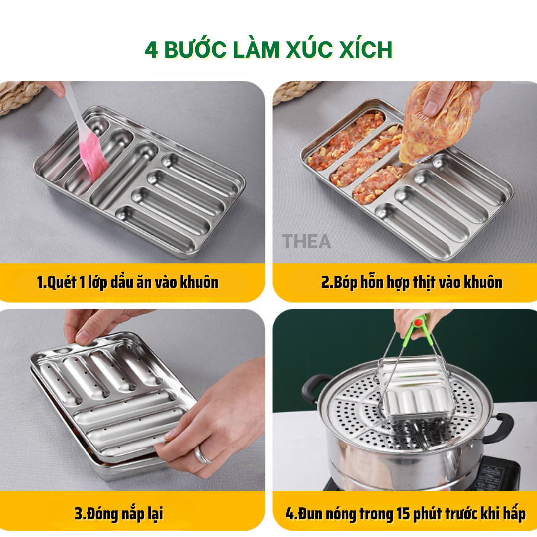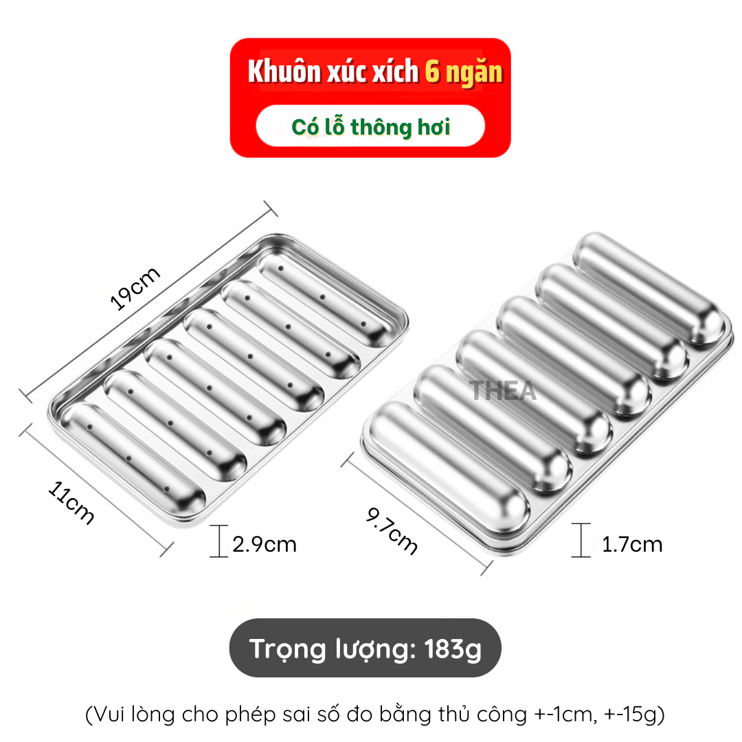 Khay inox, khuôn làm xúc xích cho bé INOX 304 cao cấp có nắp có lỗ thông hơi chín đều hấp nướng an toàn - THEA