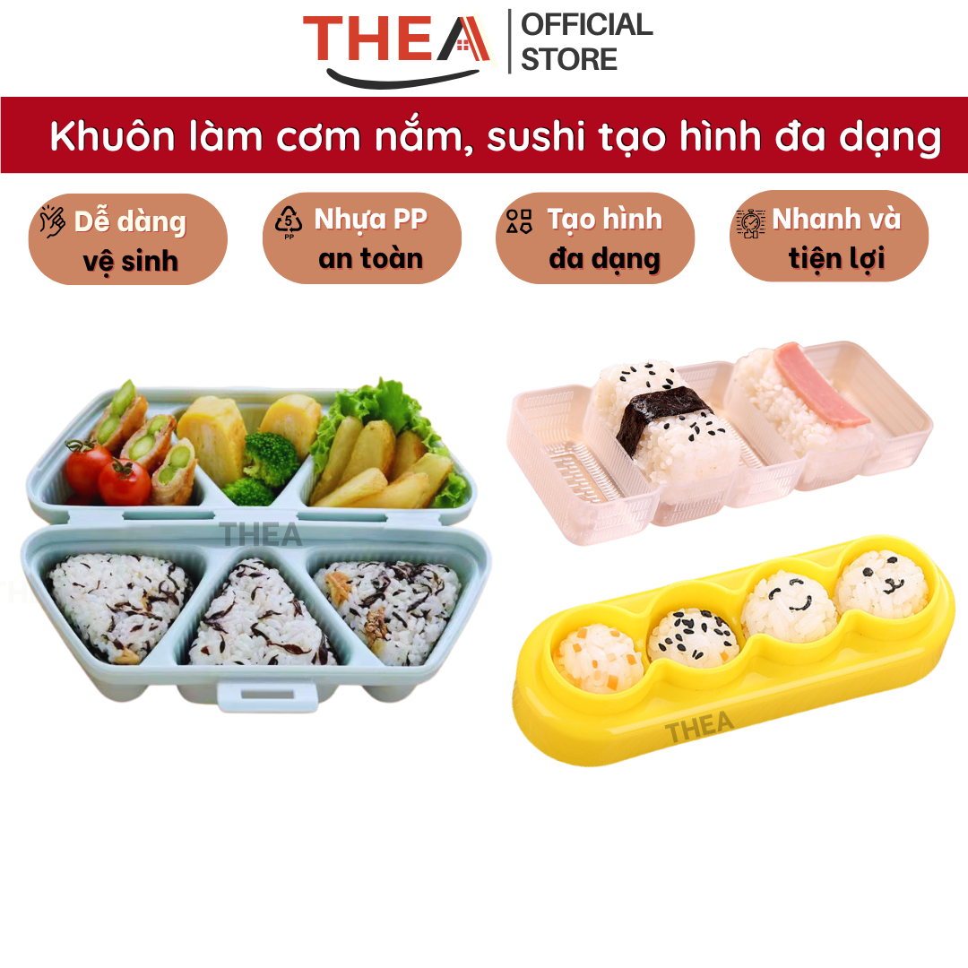 Khuôn ép làm cơm nắm hình tam giác 6 ngăn cho bé, khuôn tạo hình chữ nhật, hình tròn dễ thương - THEA