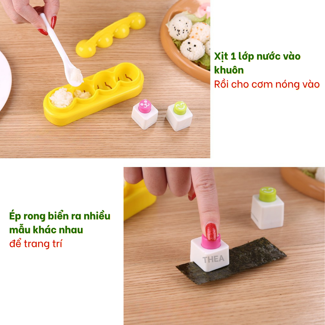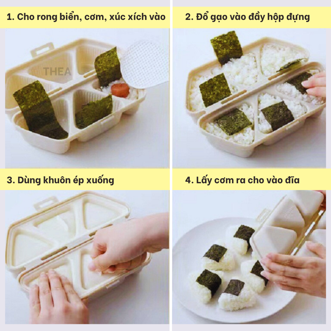 - Công Dụng: Dùng để tạo hình cơm nắm với nhiều loại nguyên liệu khác nhau, từ cơm trắng đến cơm cuộn rong biển