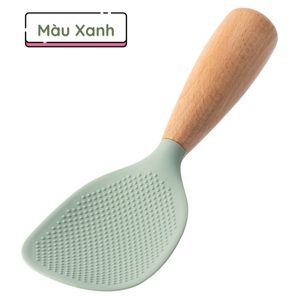 Tên sản phẩm: Muỗng xới cơm, vá múc cơm chống dinh, muôi xới cơm bằng silicone tự đứng tay cầm bằng gỗ phong cách Nhật Bản – THEA
