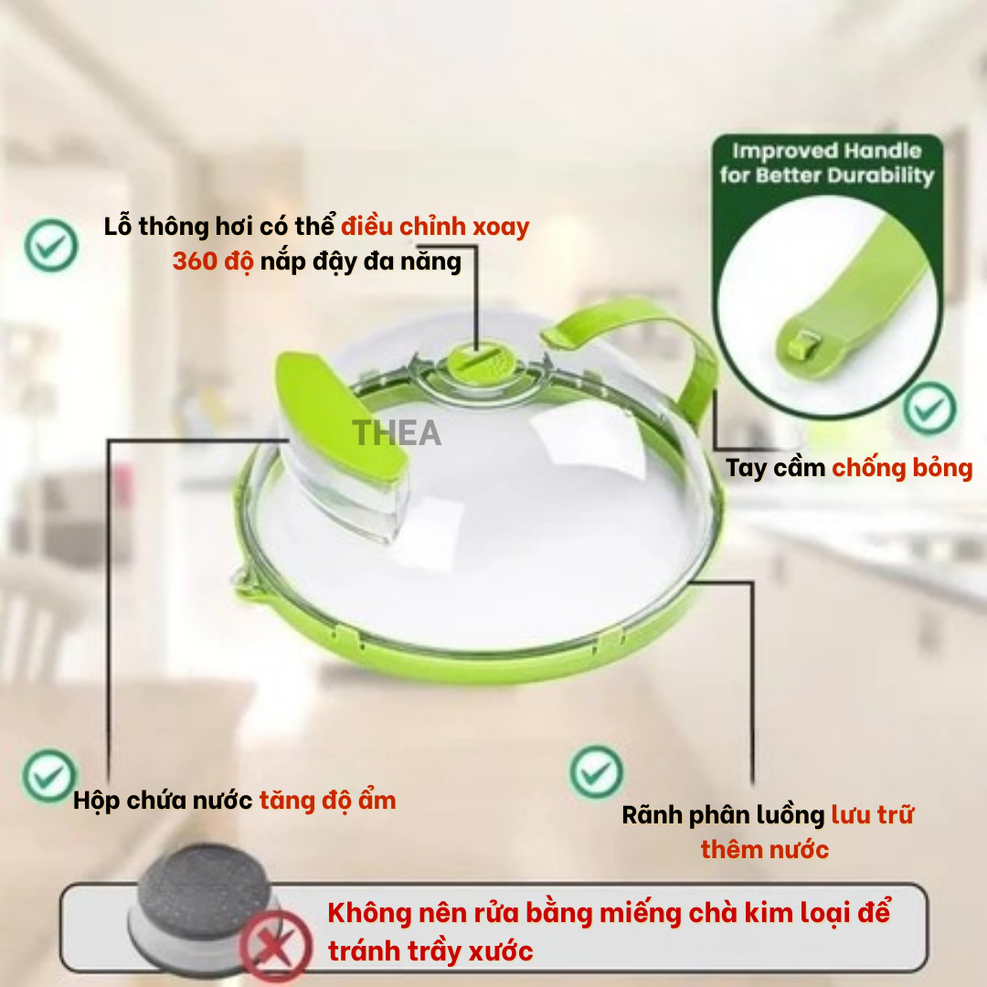 Nắp đậy lò vi sóng chịu nhiệt, nắp nhựa đậy thực phẩm quay lò vi sóng, nắp chống bắn dầu mỡ - THEA