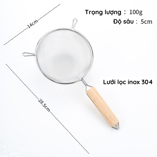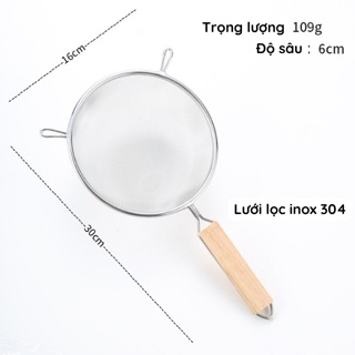 Chất liệu: Lưới lọc inox 304, tay cầm cán gỗ
