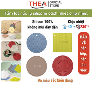 [Siêu dày] Miếng lót, tấm lót nồi 100% silicone cách nhiệt chịu nhiệt tốt, lót ly, lót nồi cơm chống trượt vuông tròn loại tốt -THEA