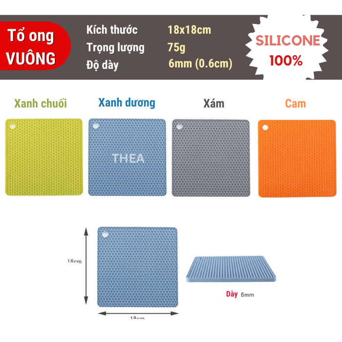 Tên sản phẩm: [Siêu dày] Miếng lót, tấm lót nồi 100% silicone cách nhiệt chịu nhiệt tốt, lót ly, lót nồi cơm chống trượt vuông tròn loại tốt - THEA