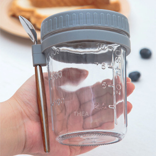 Tên sản phẩm: Cốc ly thủy tinh ăn ngũ cốc ăn sáng, đựng gia vị, đựng mứt có nắp, có vạch chia kèm muỗng inox cán gỗ sang trọng
