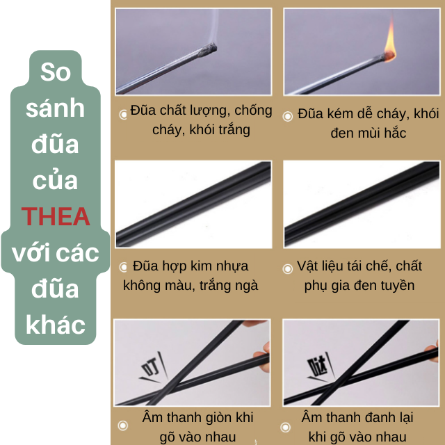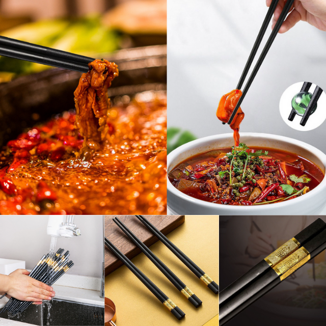 Tên sản phẩm: Bộ 10 đôi đũa hợp kim nhựa dùng ăn cơm sang trọng mạ vàng chịu nhiệt đến 240 độ không trơn, chống mốc – THEA