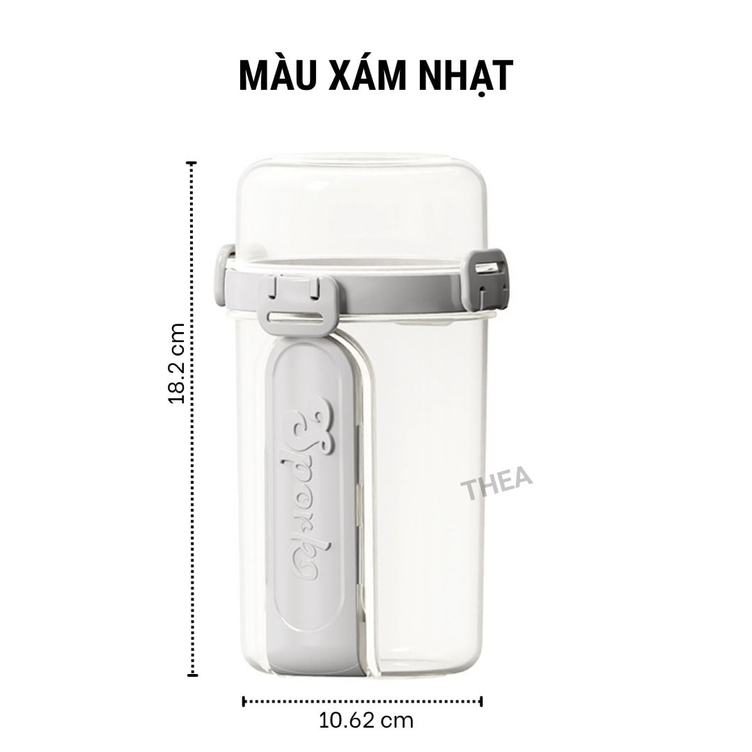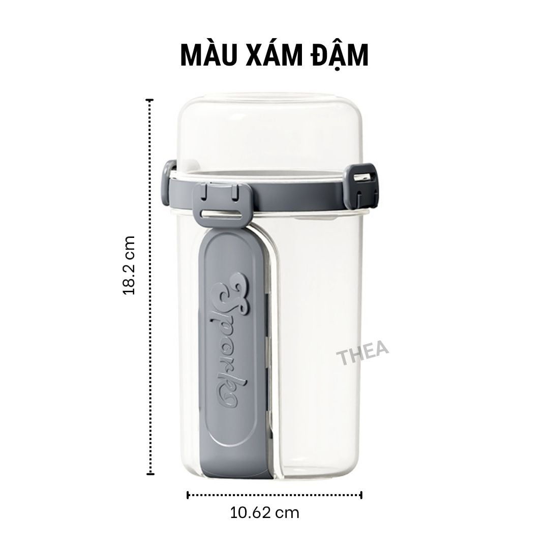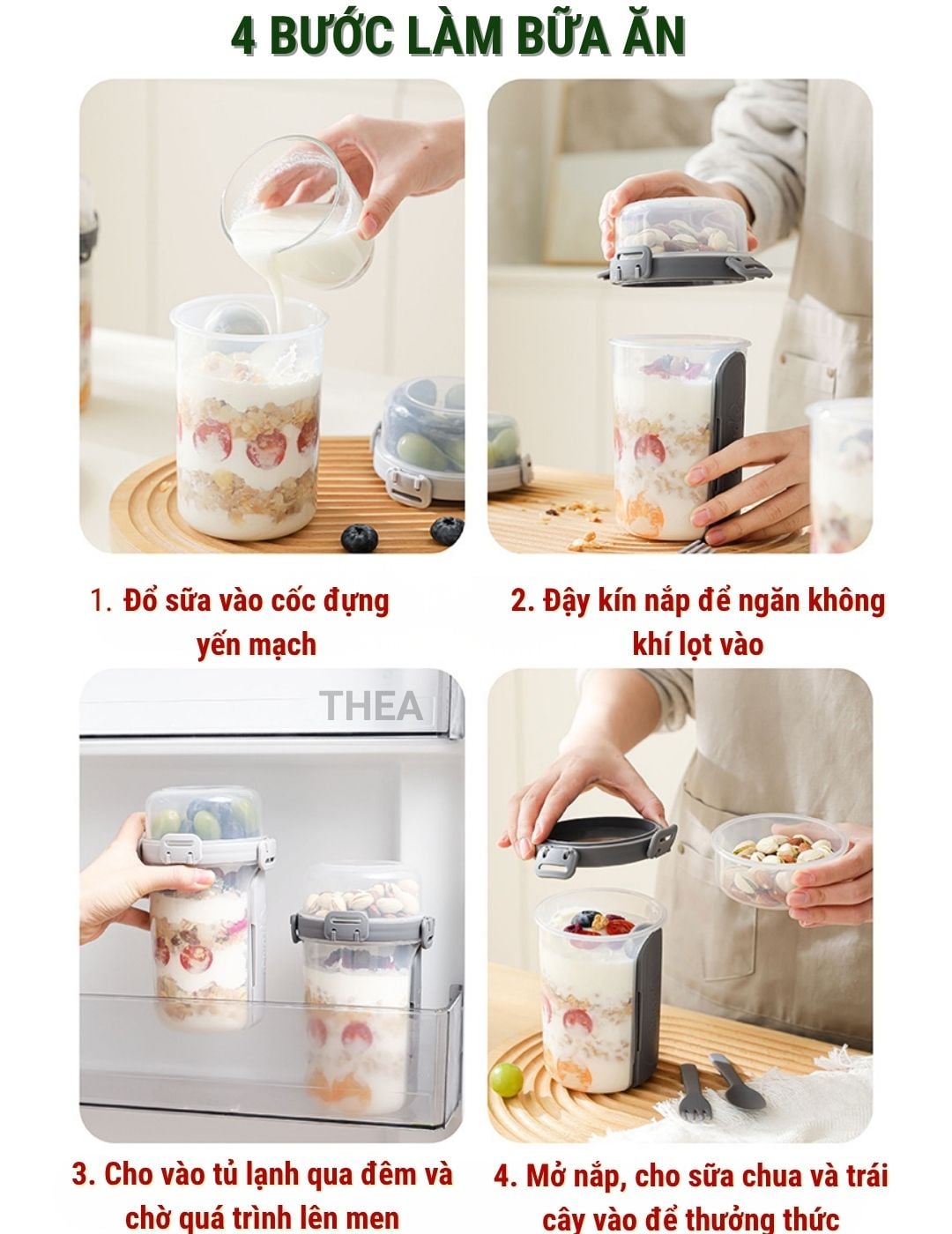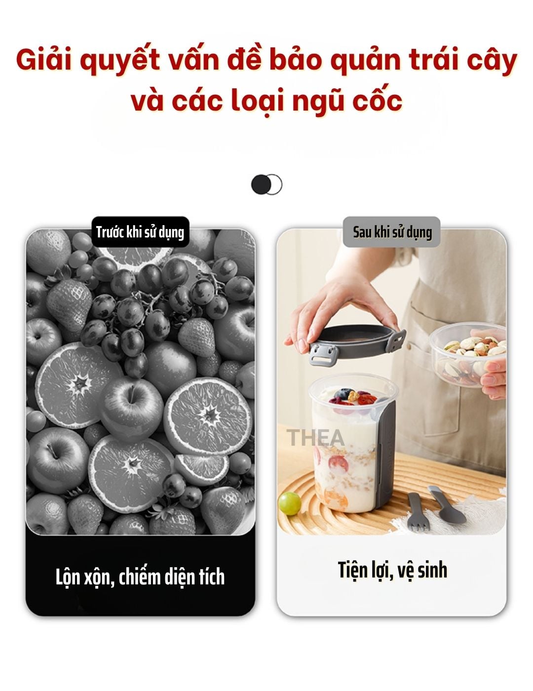 Hũ đựng yến mạch qua đêm, cốc nhựa trong có nắp ngâm yến mạch, Hộp đựng salad, hạt, ngũ cốc ăn sáng kèm muỗng nĩa 2 tầng - THEA