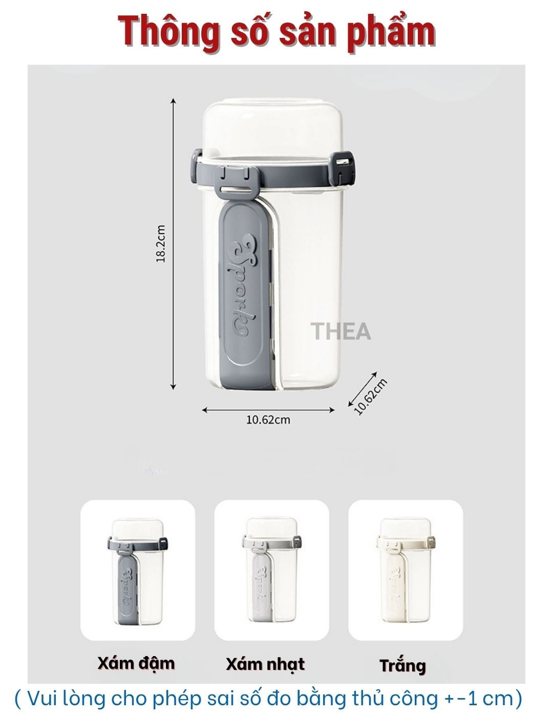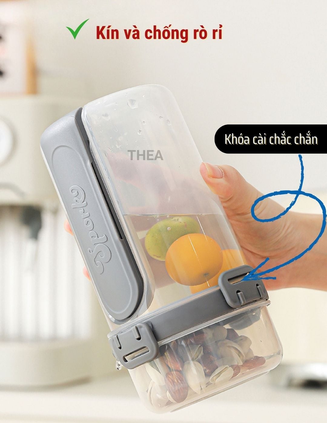 Đặc Điểm: Miệng cốc rộng, dễ cho vào và rót, nắp kín và hai khóa chắc chắn, tích hợp khu vực để dụng cụ ăn phía trong.