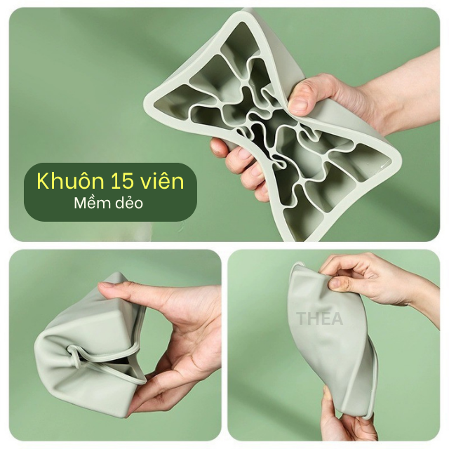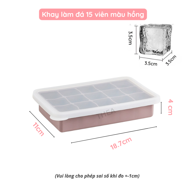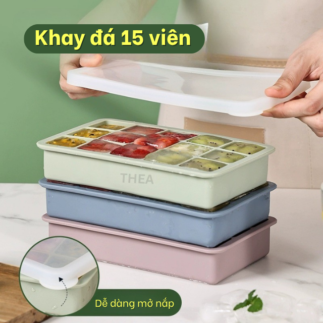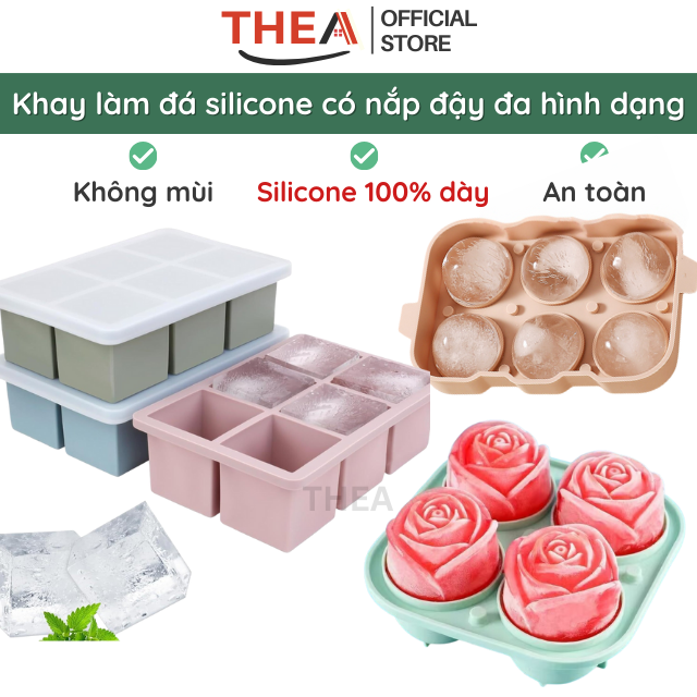 Khay làm đá viên 100% silicone dày 6-8 vuông có nắp đậy kín để tủ lạnh lấy đá tiện lợi không mùi an toàn sức khỏe – THEA
