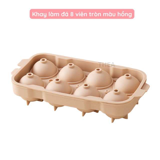 ☑️ Khay làm đá silicone tròn làm được 6-8 viên đá, nắp đậy hợp vệ sinh, không ám mùi thức ăn