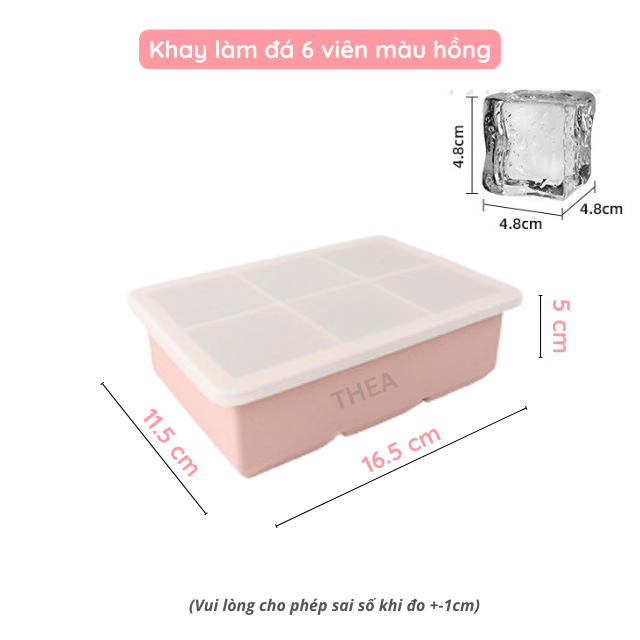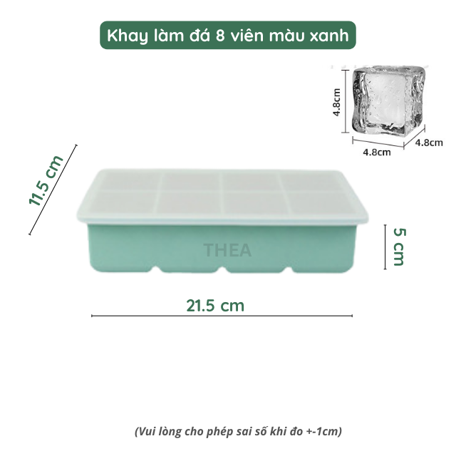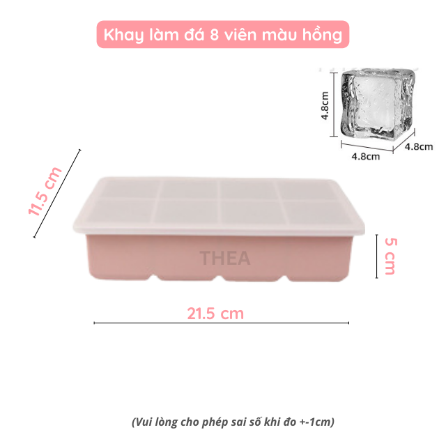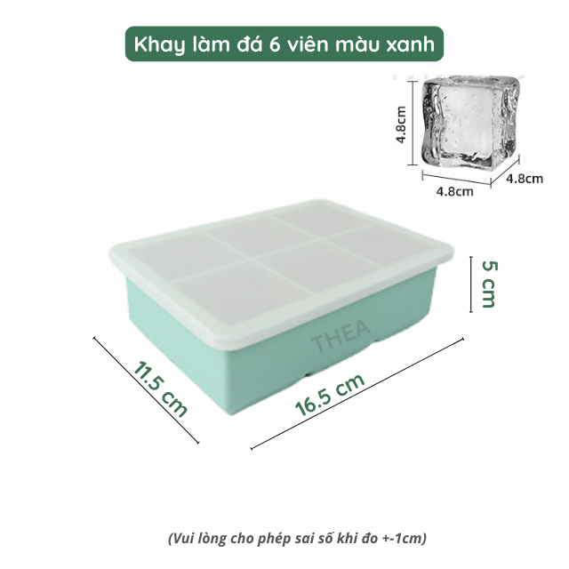 Tên sản phẩm: Khay làm đá silicone vuông có nắp đậy, khay làm đá 6-8 viên tủ lạnh – THEA