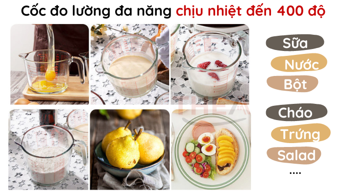- Công dụng: ca đo lường chất lỏng, pha sữa, nấu nướng hay làm bánh,…