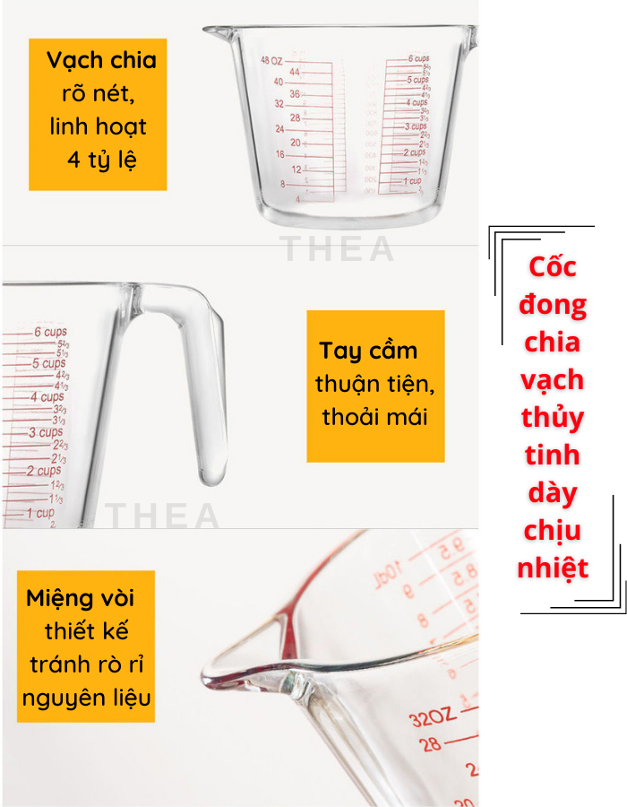 ☑️ Ca đong ml chia vạch làm từ thủy tinh cường lực cao cấp dày cứng chịu nhiệt từ -20 độ đến 120 độ C