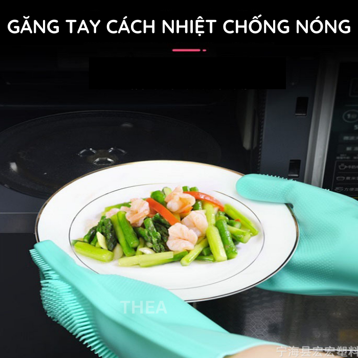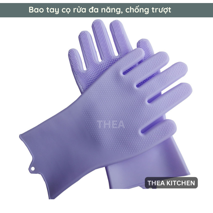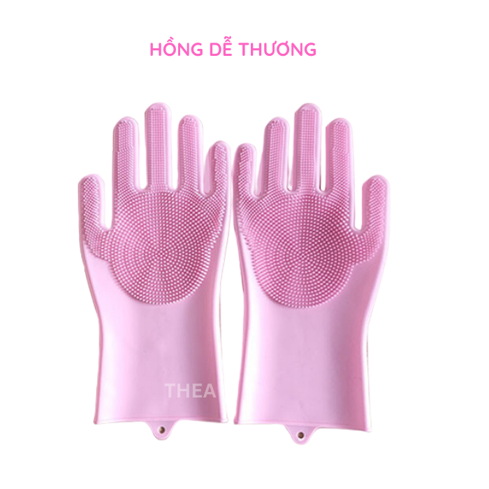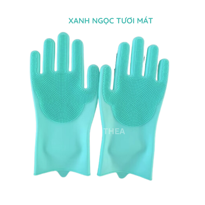 Đôi găng tay cao su 100% silicone dày cao cấp rửa chén bát đa năng không mùi, bao tay rửa chén silicon vệ sinh cọ rửa nhà bếp, toilet - THEA