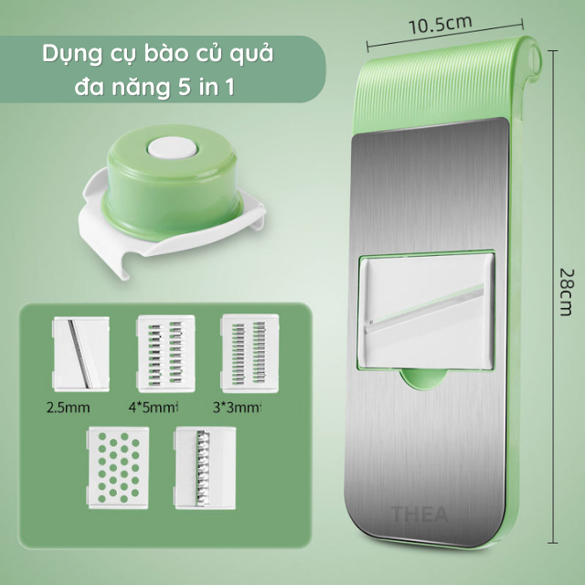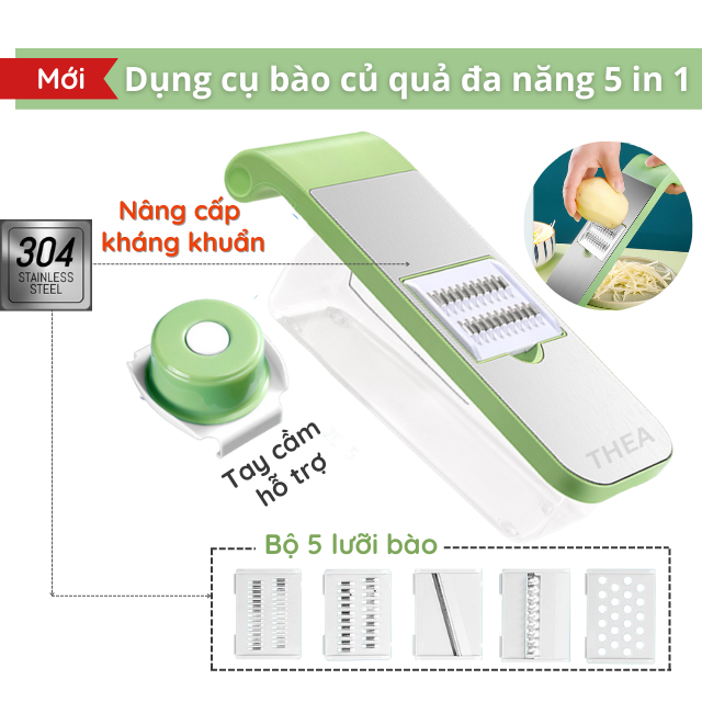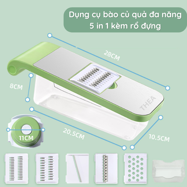 Bộ dụng cụ nạo bào sợi cắt lát rau củ quả đa năng kèm rổ 5 in 1, máy bào, bàn bào rau củ quả đa năng – THEA