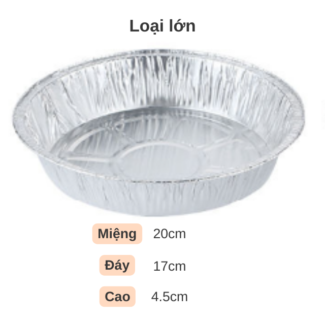 Loại 20cm : Đường kính Miệng 20cm, đường kính đáy 17cm, cao 4.5cm