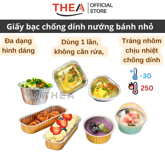 Khay giấy bạc, giấy nhôm lót nồi chiên không dầu [Loại 1 nhỏ] nướng bánh,hàu chống dính hình tròn,vuông chữ nhật 105ml –THEA