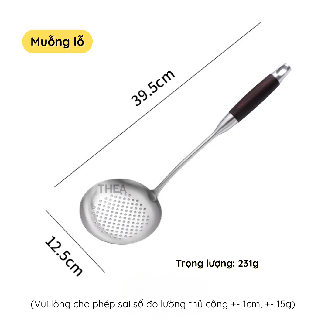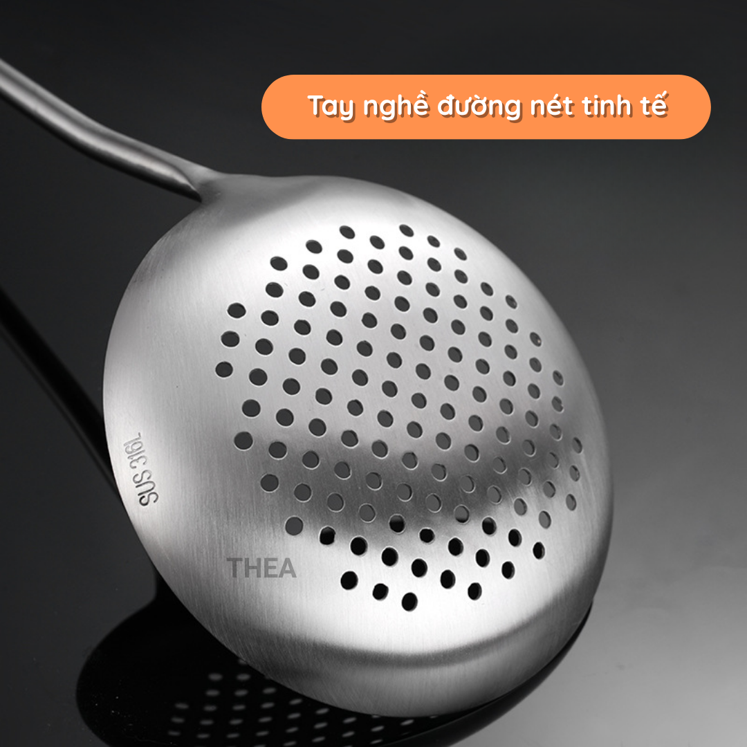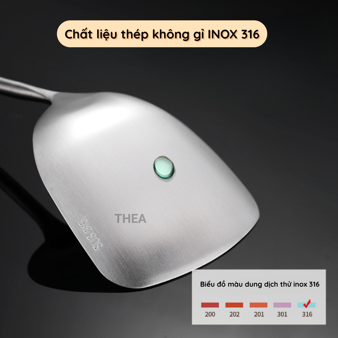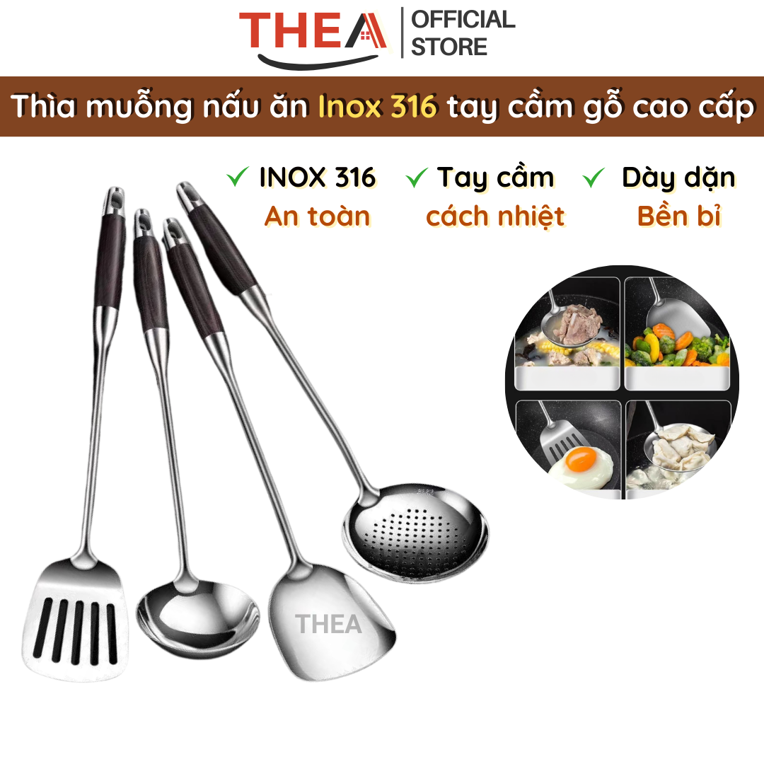 Muỗng inox, muôi múc canh, thìa, xẻng inox 316 chiên xào nấu ăn tay cầm gỗ cách nhiệt cao cấp - THEA