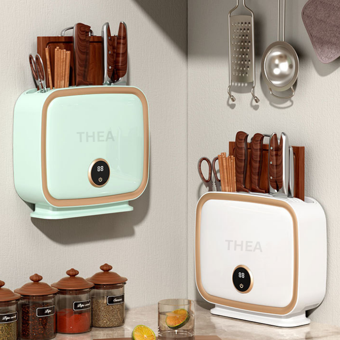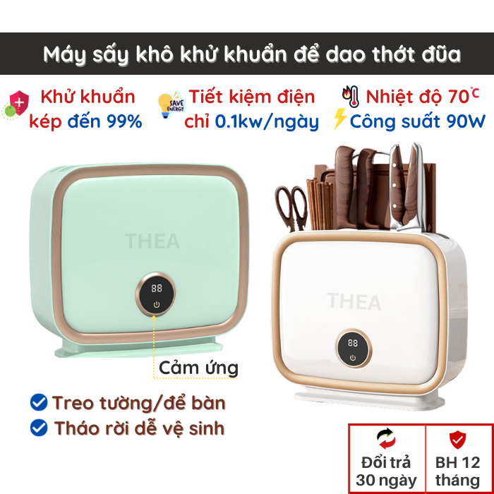 Tên sản phẩm: Máy sấy sấy khô khử khuẩn tia UV kết hợp giá để dao thớt đũa thìa nhà bếp - công suất mạnh 90W tiết kiệm điện treo tường – THEA